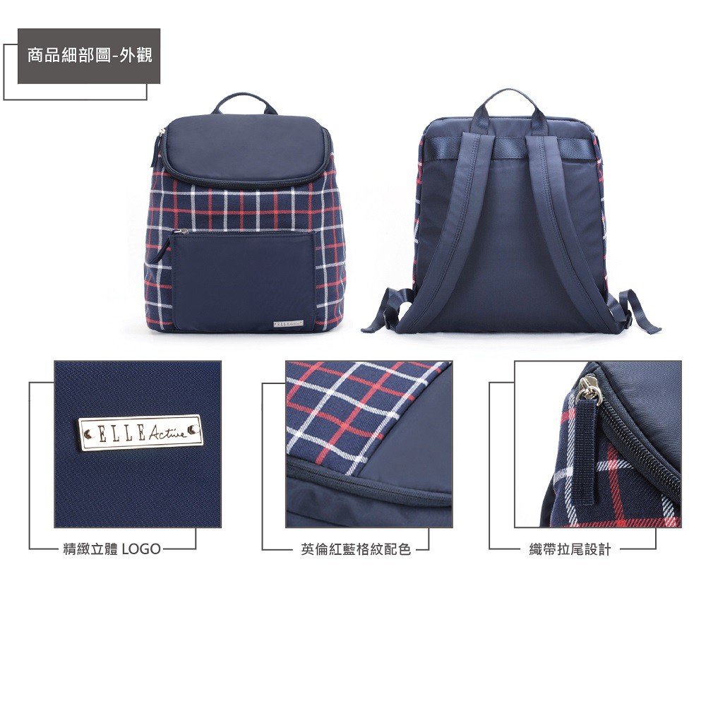 【ELLE Active】迷幻生活系列-後背包-中-英倫格紋