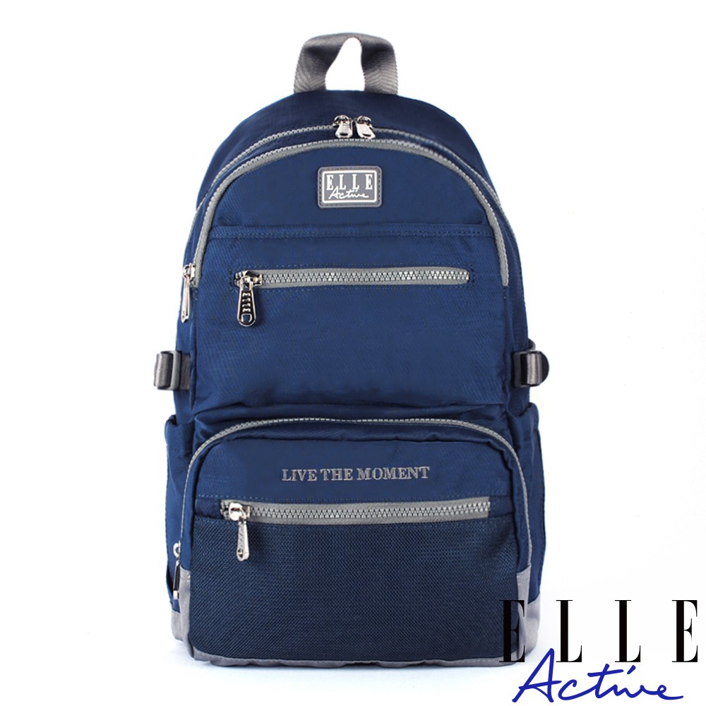 【ELLE Active】透視網布系列-後背包-中-深藍色