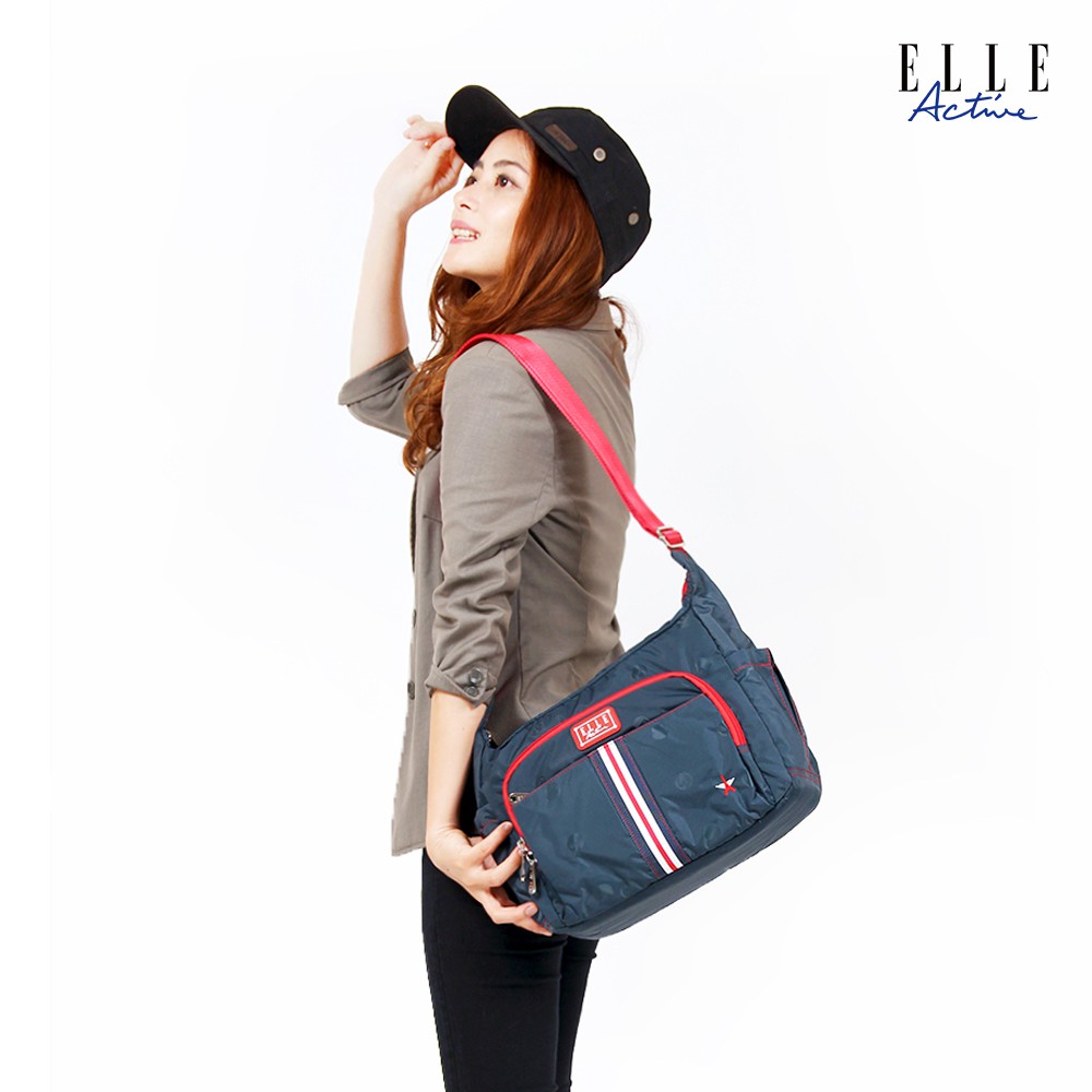 【ELLE Active】經典復刻系列-側背包/斜背包-大-藍色