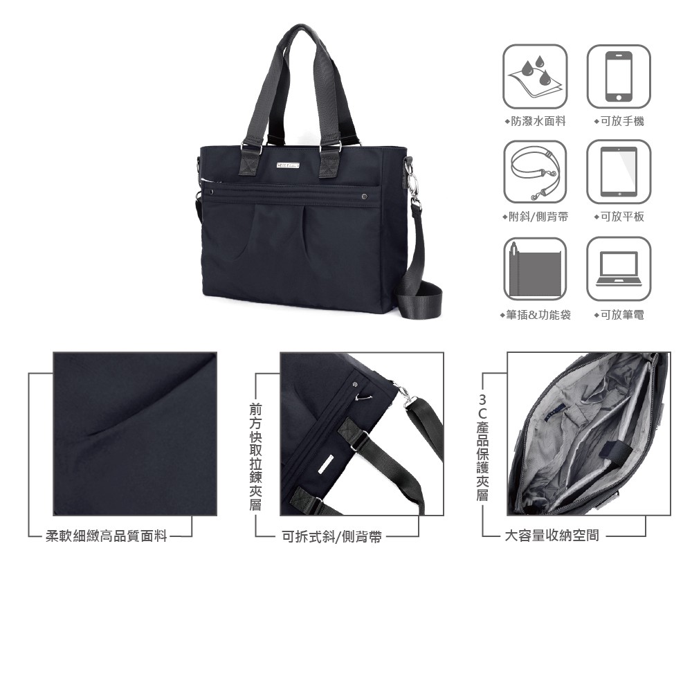 【ELLE Active】知性優雅系列-托特包/肩背包/購物袋-黑色