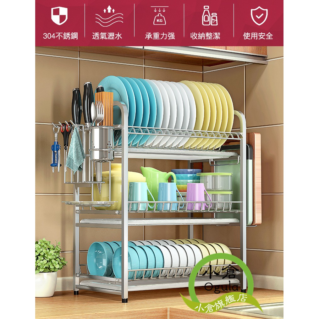 304碗架 瀝水架 碗盤架 廚房收納架 廚房置物架 三層置物架 多功能【有包固附發票】