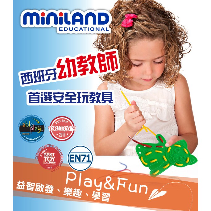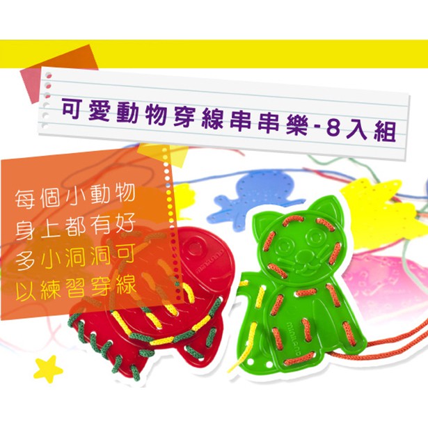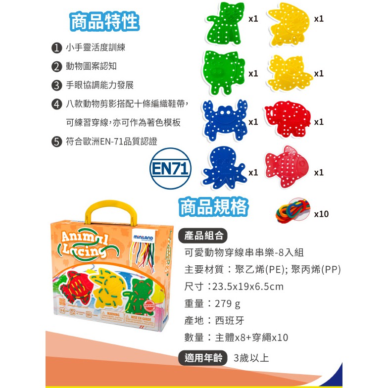【西班牙Miniland】可愛動物穿線串串樂 8入組