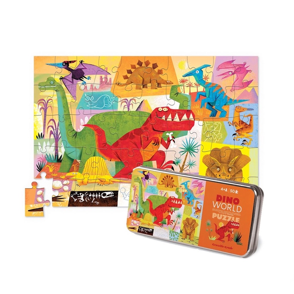 【美國Crocodile Creek】鐵盒童趣拼圖-侏儸紀-50片