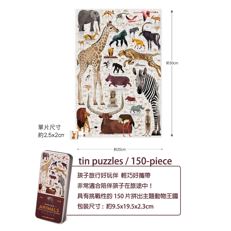 【美國Crocodile Creek】鐵盒圖鑑拼圖-非洲動物-150片