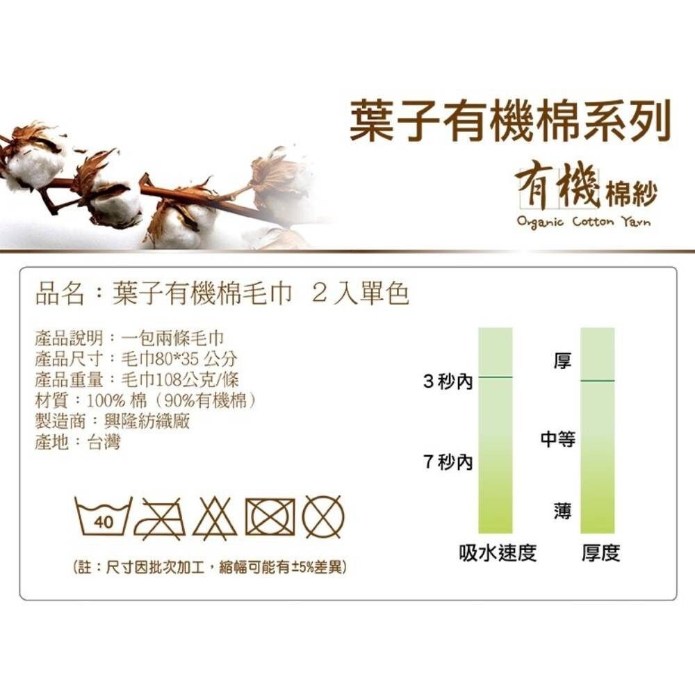 台灣興隆毛巾 繡葉子有機棉毛巾 2入單色