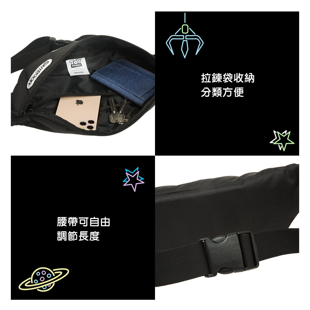 【OUTDOOR】DISNEY聯名款霓虹三眼怪系列腰包-黑色 ODDY21A05BK
