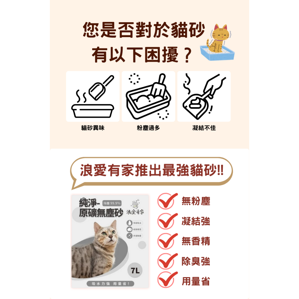 浪愛有家原礦無塵砂貓砂 (免運)-7L 整箱5入20公斤重