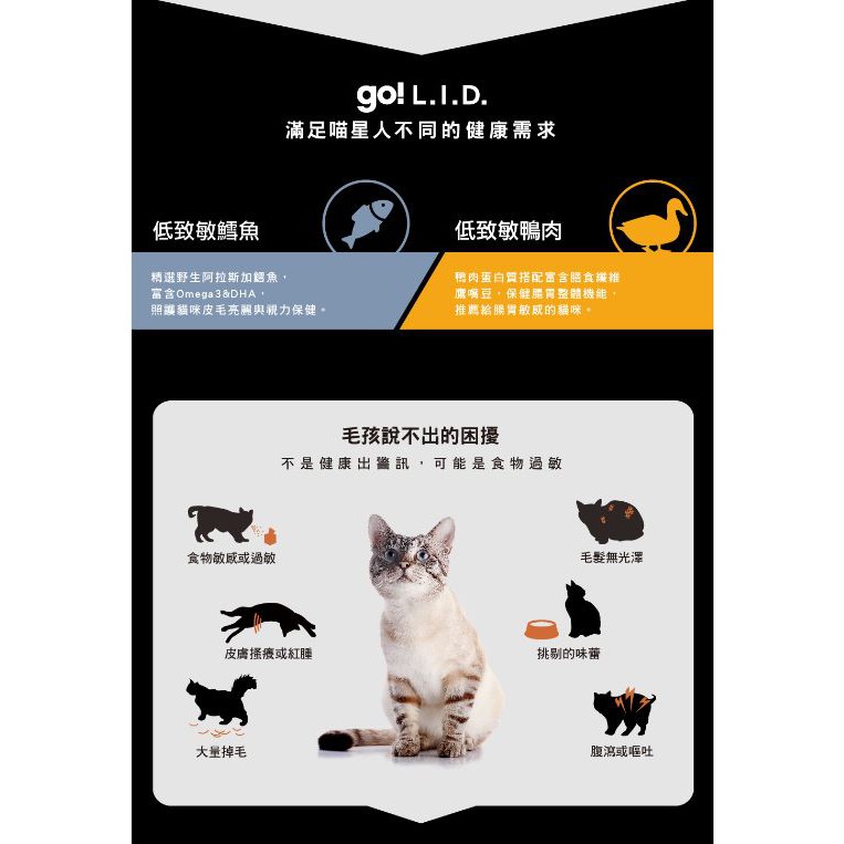 go! 低致敏無穀配方 貓糧 6/8磅(2.72/3.63kg)