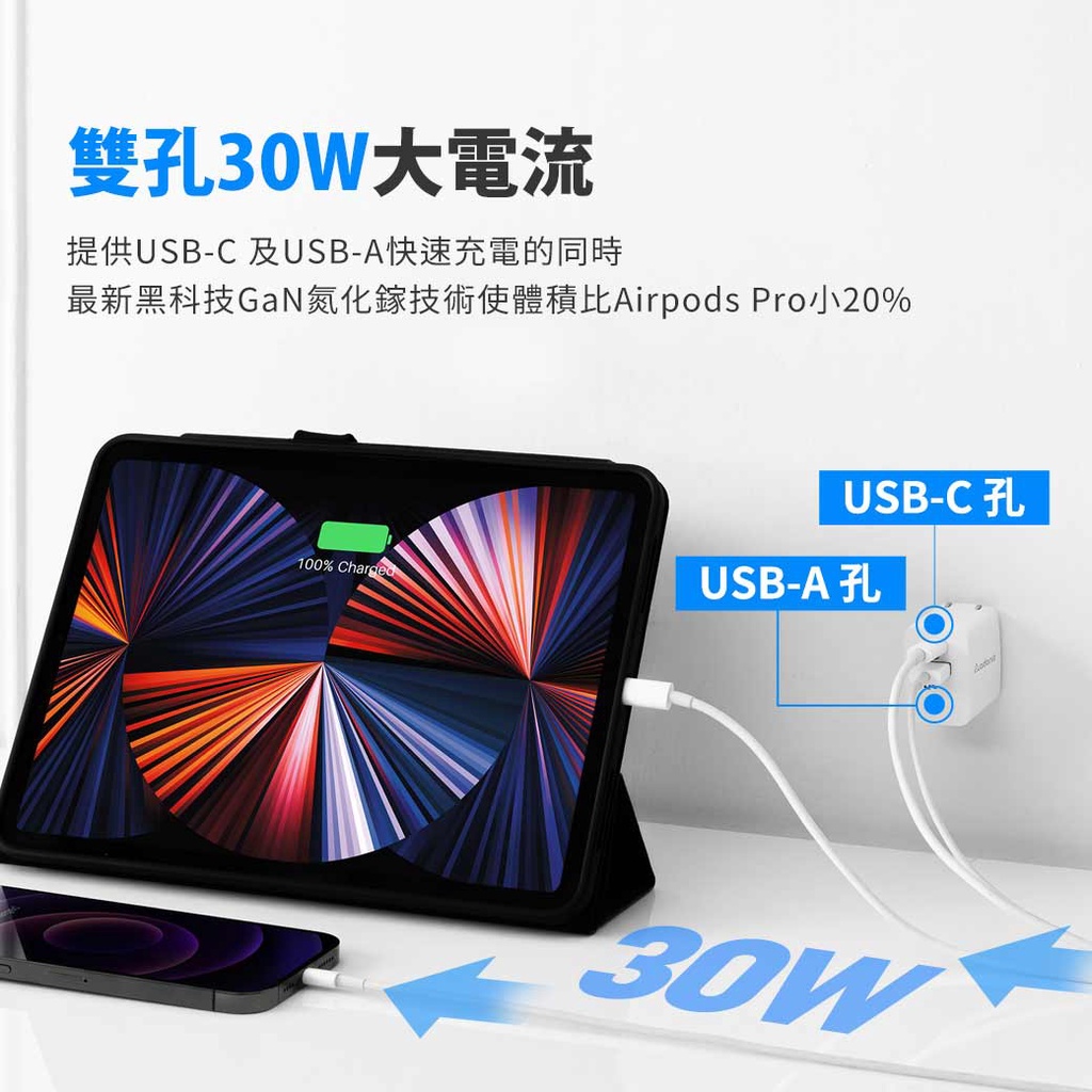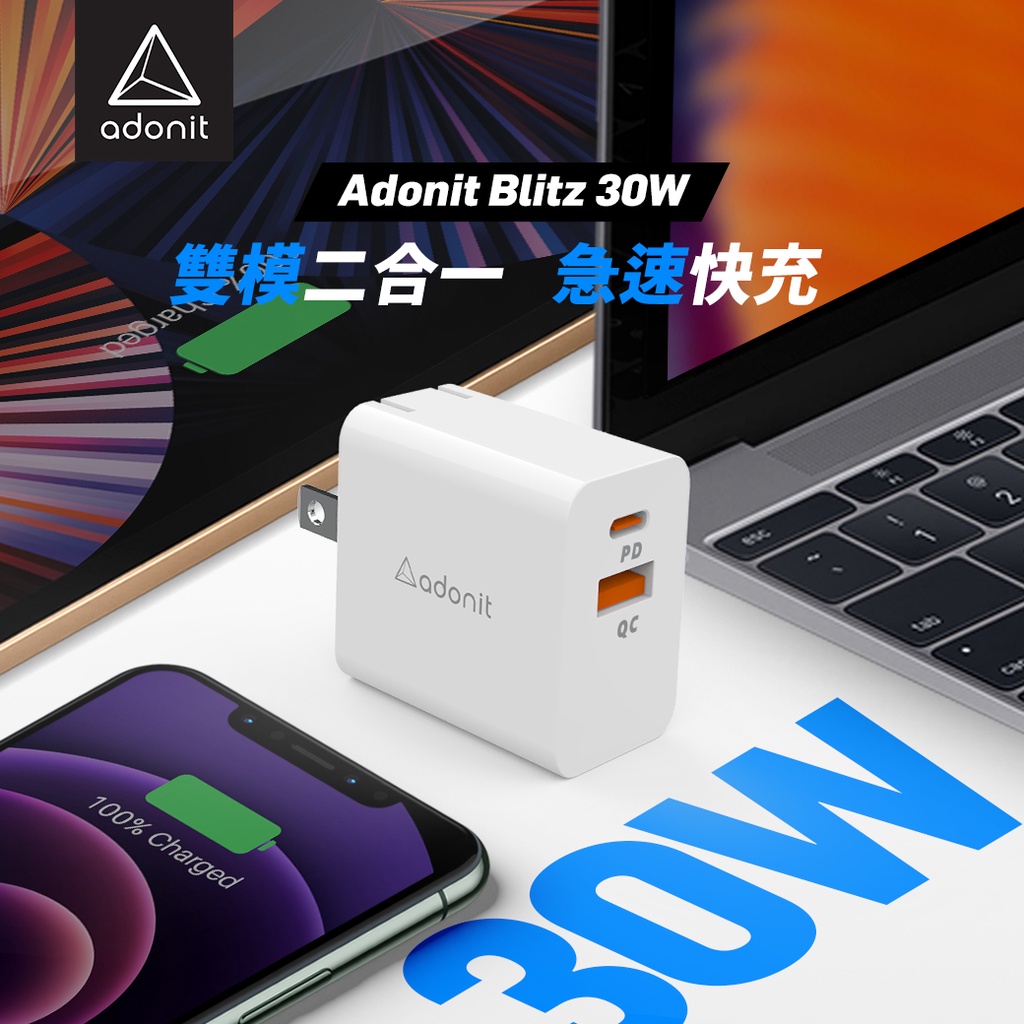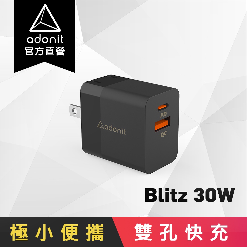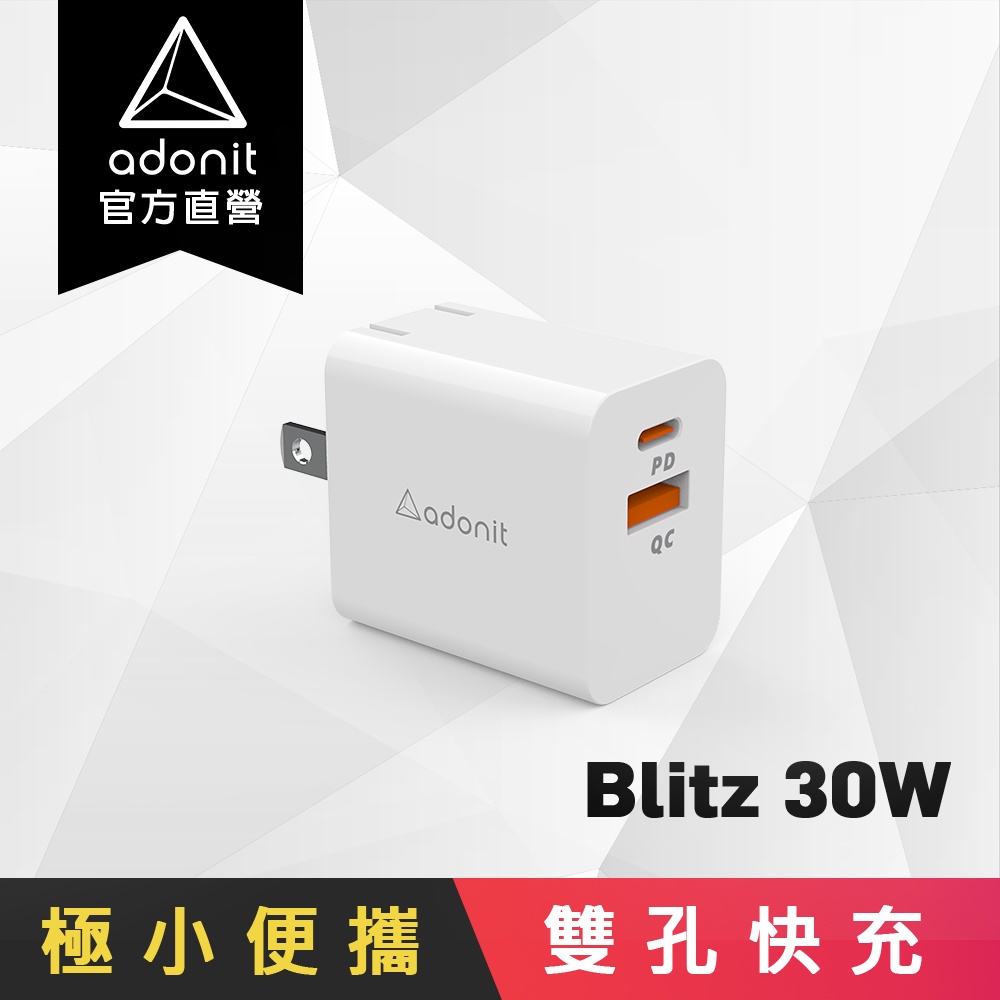 【Adonit 煥德】Blitz 30W USB-C PD&QC3.0 雙孔折角高速充電器 黑色/白色