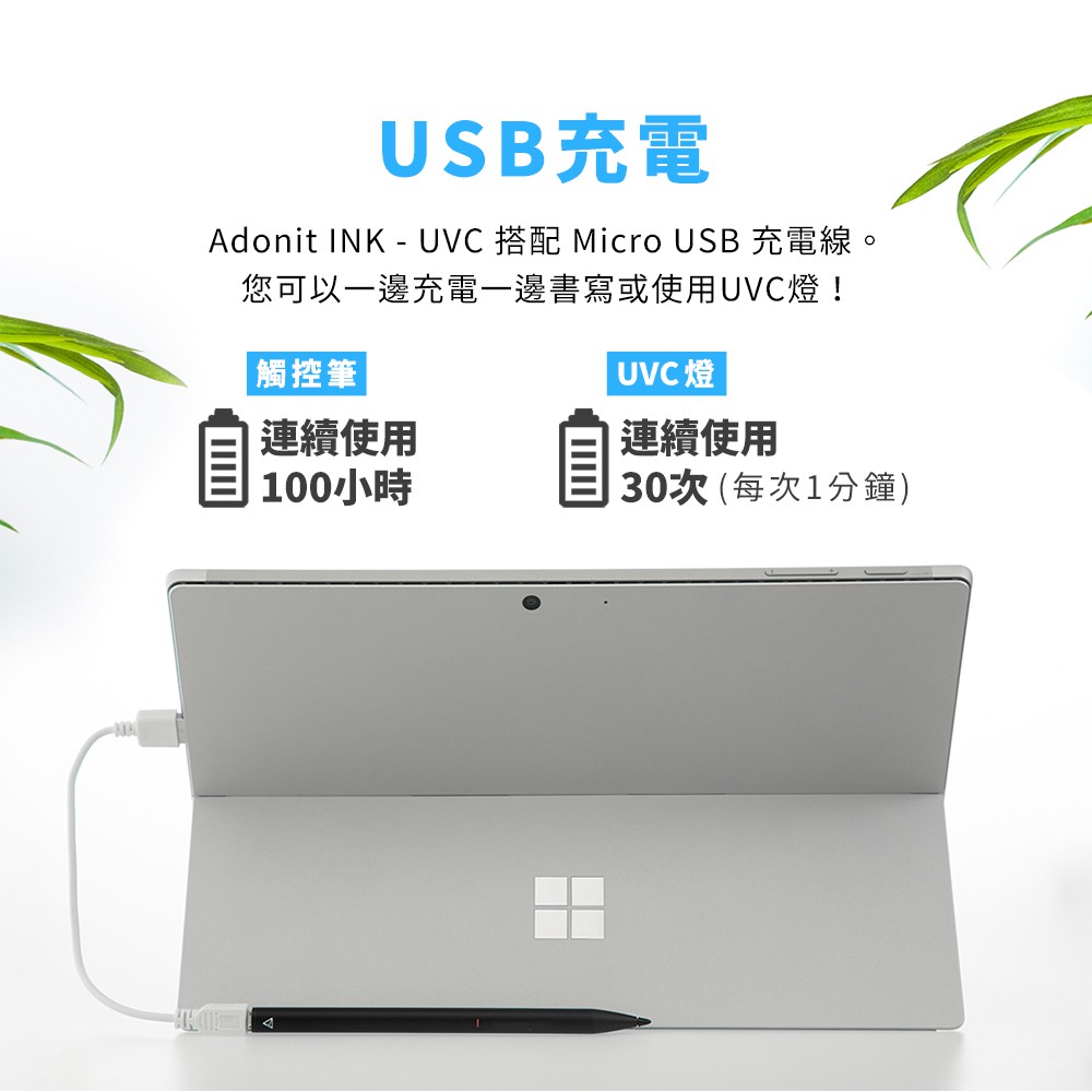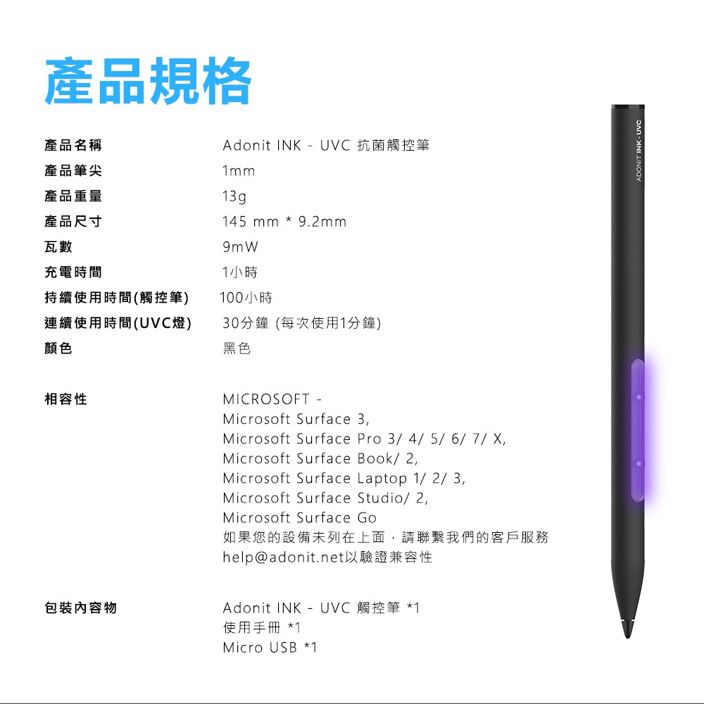 【Adonit】INK UVC - 紫外燈抗菌觸控筆,滅菌99%,家庭防疫愛用,Surface專用版