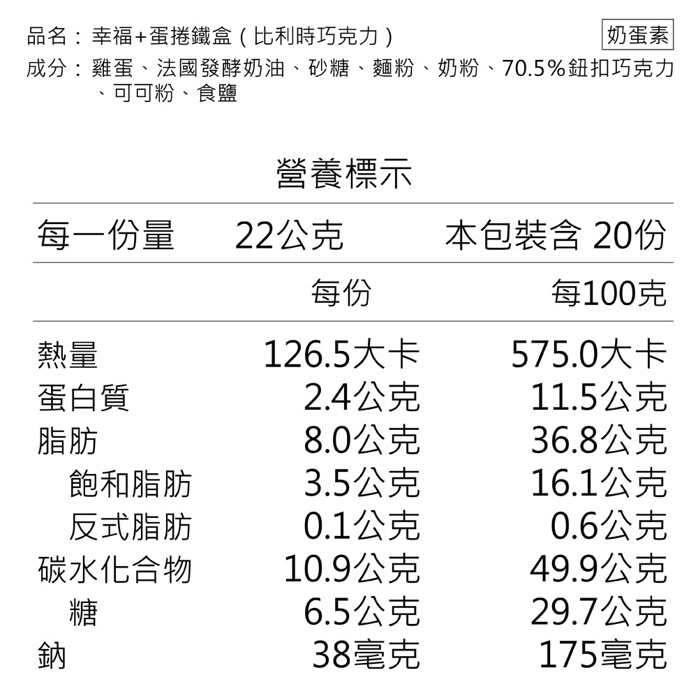心路基金會 | 幸福+蛋捲鐵盒 比利時巧克力 20支