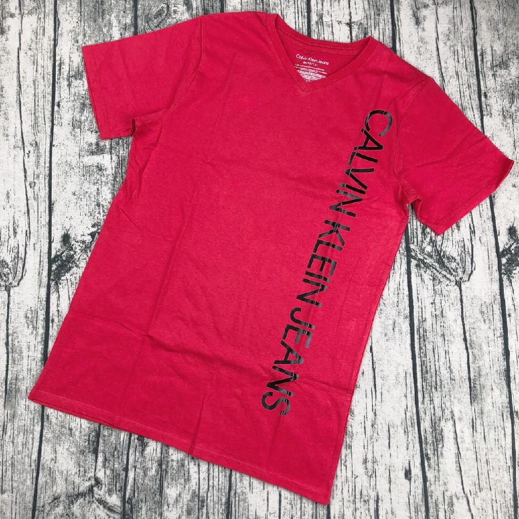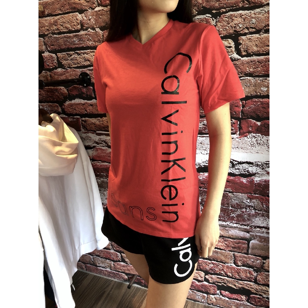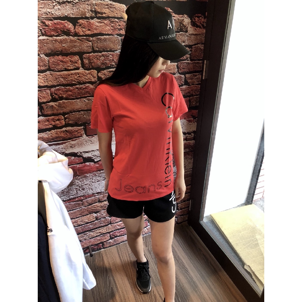 Calvin Klein CK 上衣 t恤 美國青年款 上衣 V領短T 側字LOGO款 衣服 短袖t恤 大 小ck 現貨