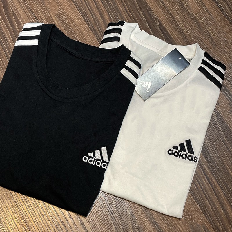 adidas Essentials 三線 短袖 短T 電繡 純棉 黑 白 GL3733 GL3732