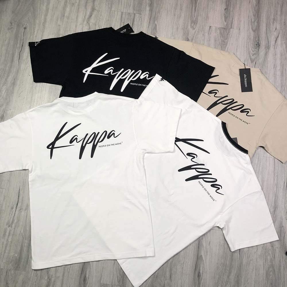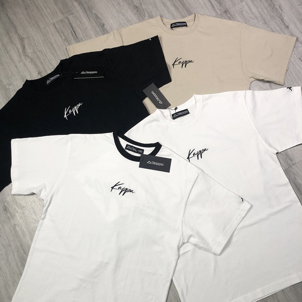 KAPPA 日線 落肩 草寫短袖 刺繡 經典大LOGO 情侶款 黑色 白色 奶茶色