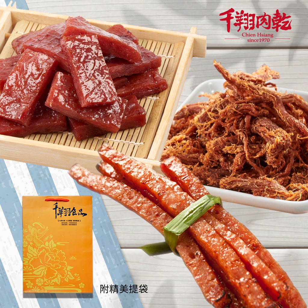 [千翔肉乾]人氣三選禮-特厚蜜汁豬肉乾190g+原味波可棒240g+椒麻豬肉絲135g/附精美提袋