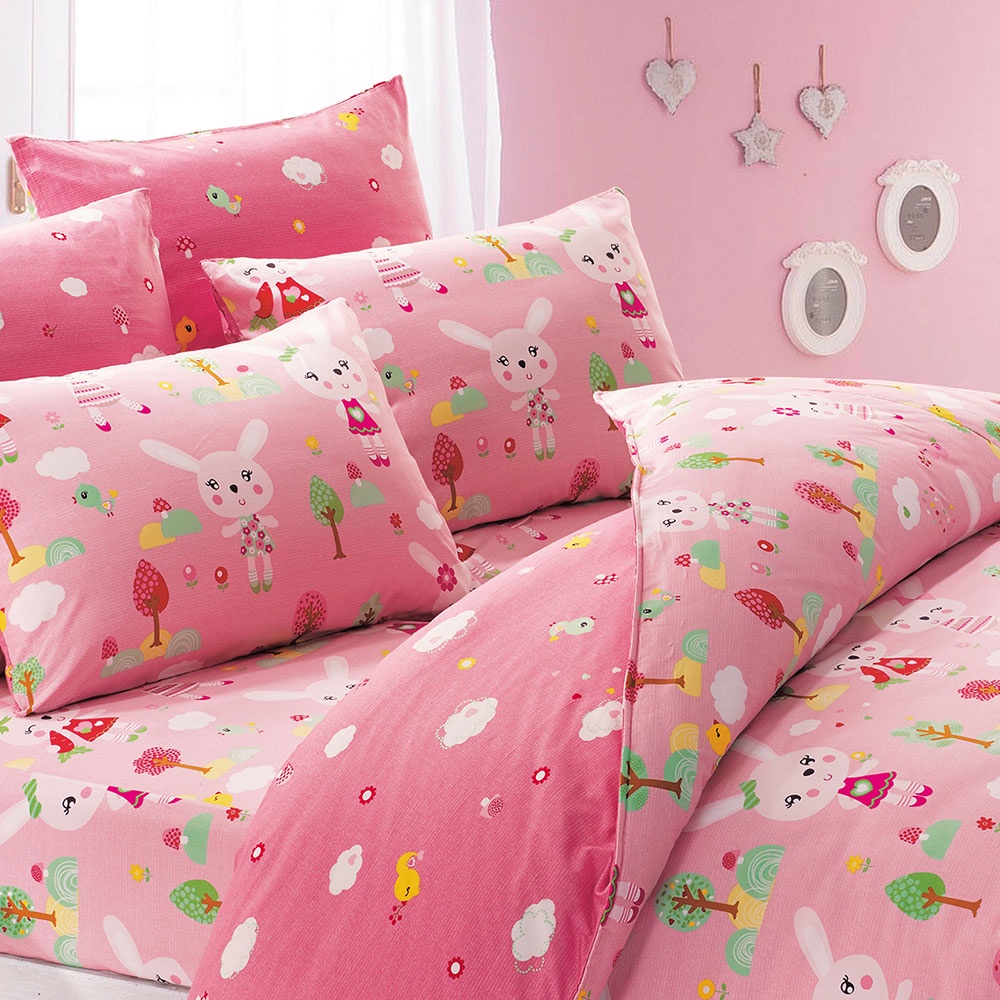 鴻宇 床包被套組 萌萌兔粉 多尺寸任選 防蹣抗菌 美國棉授權品牌 台灣製2100