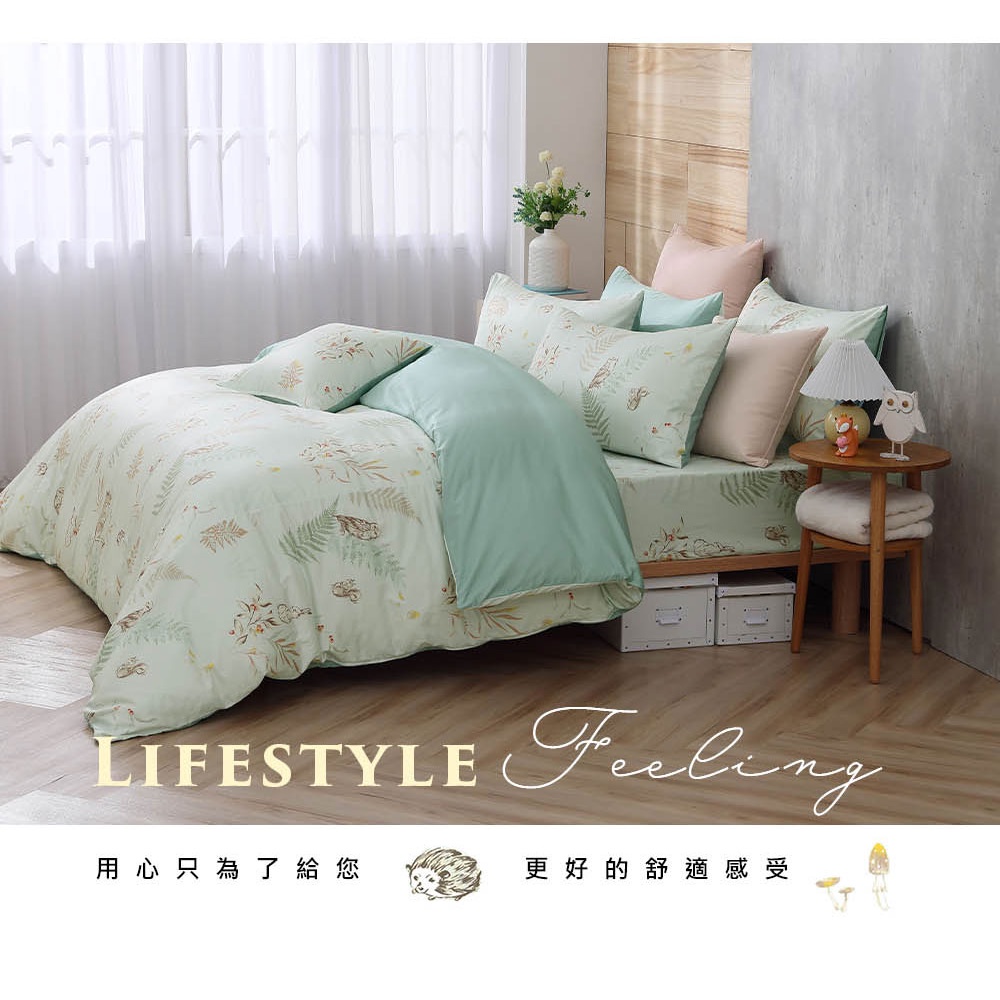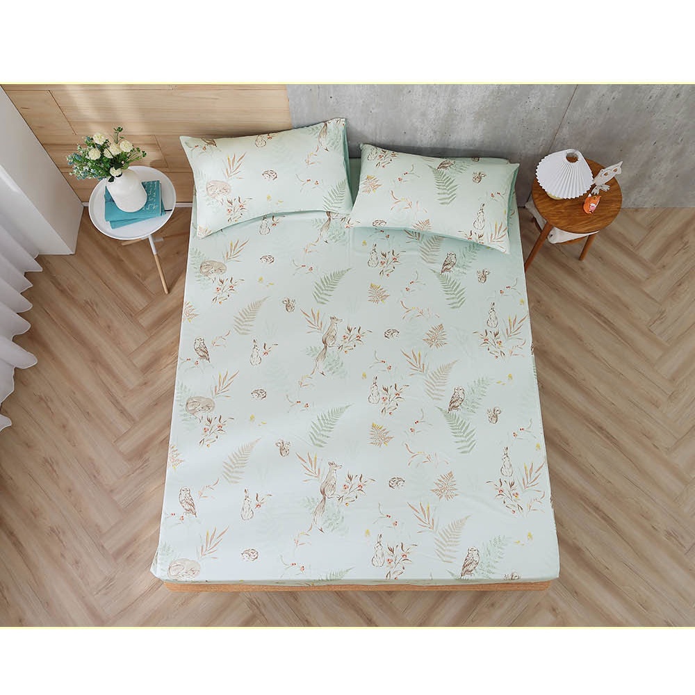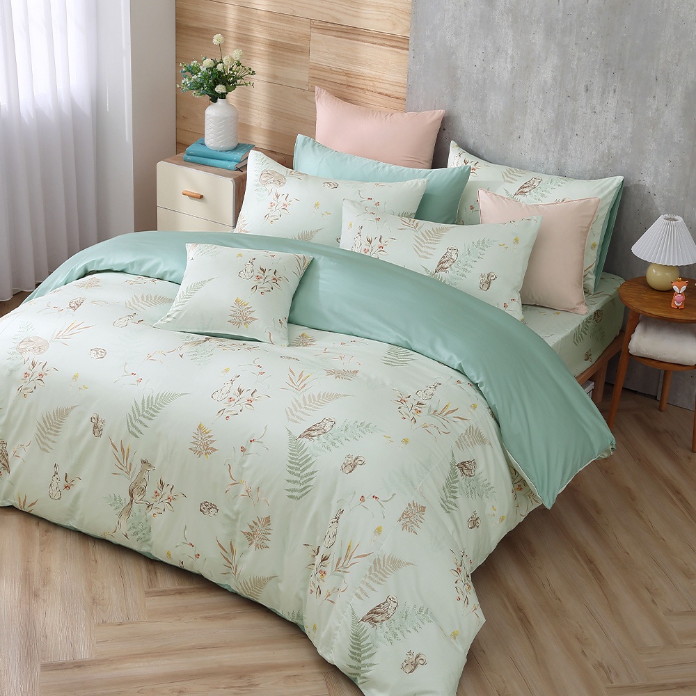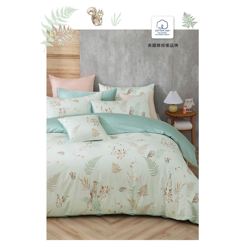 鴻宇 美國棉300織 床包枕套組 床包被套四件組 美國棉 狐狸艾莉森-綠 台灣製2306