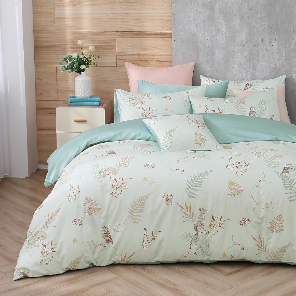鴻宇 美國棉300織 薄被套 兩用被套 狐狸艾莉森-綠 台灣製2306