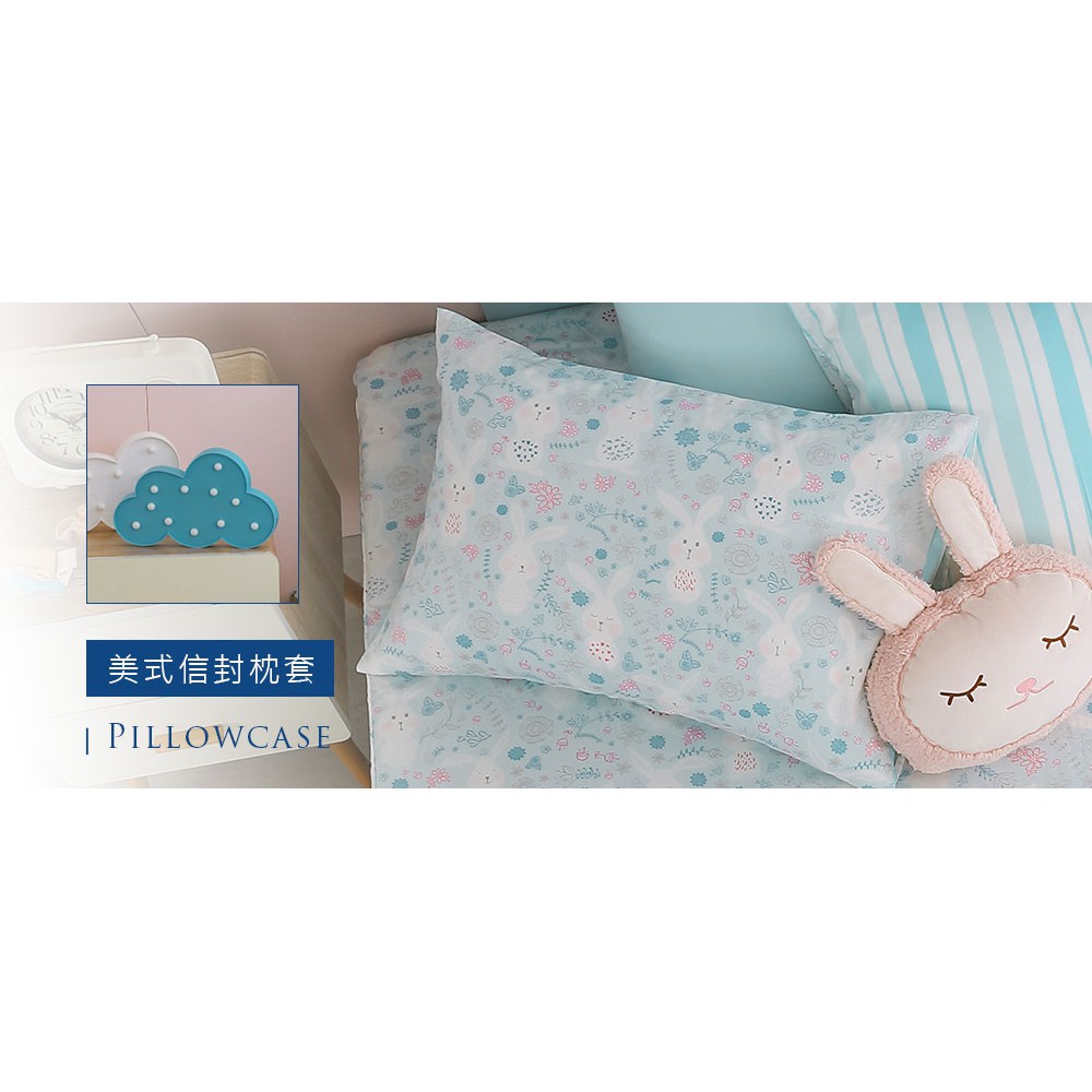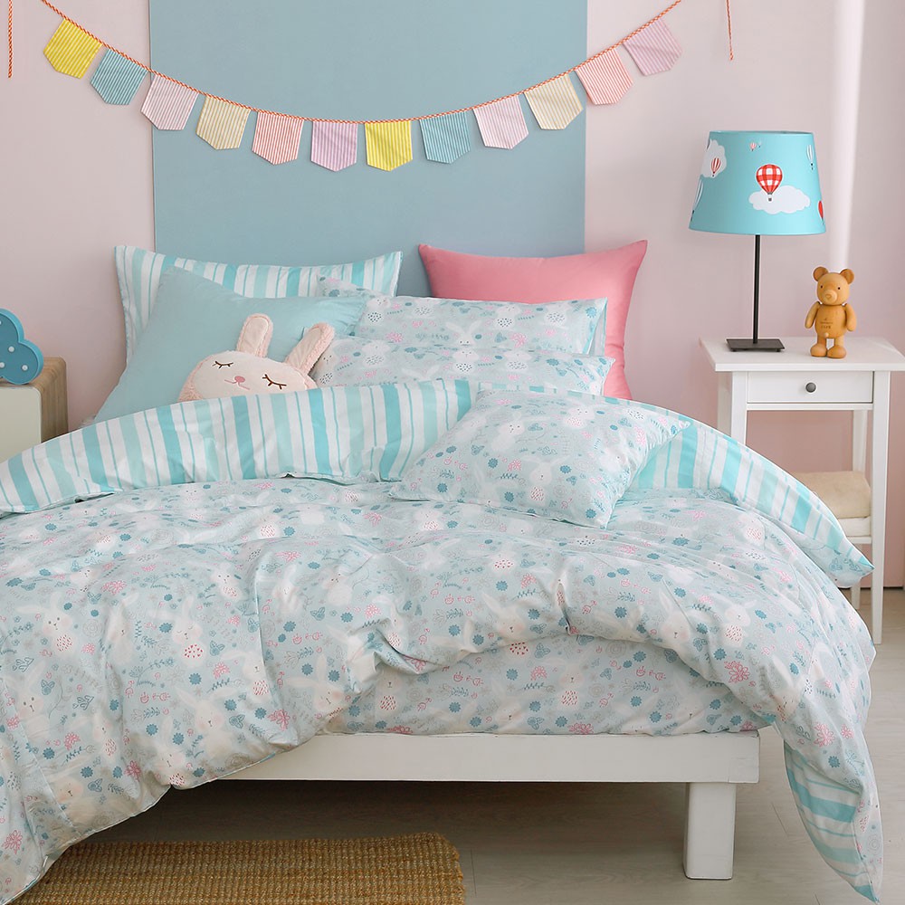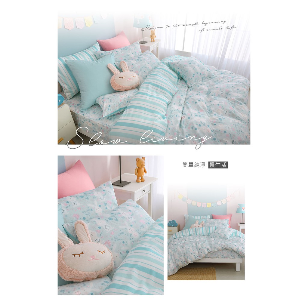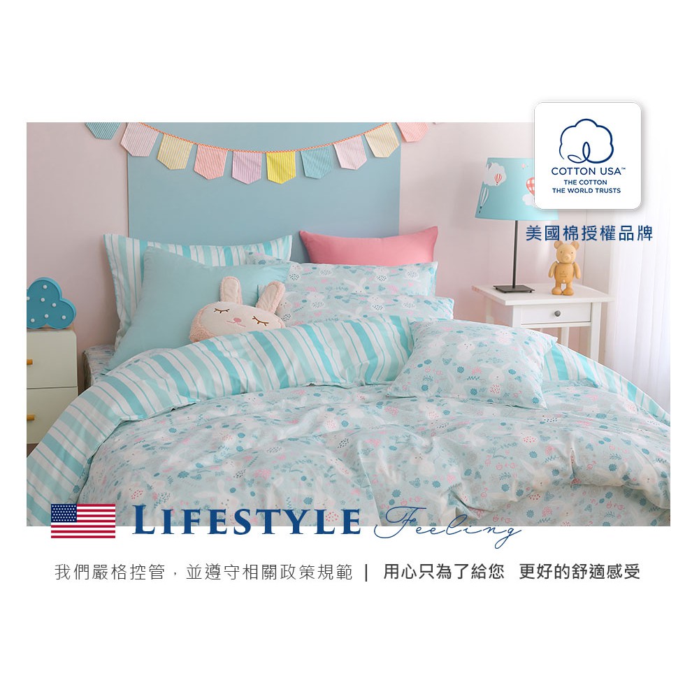 鴻宇 美國棉300織 床包枕套組 床包被套四件組 眠眠兔藍 台灣製2225