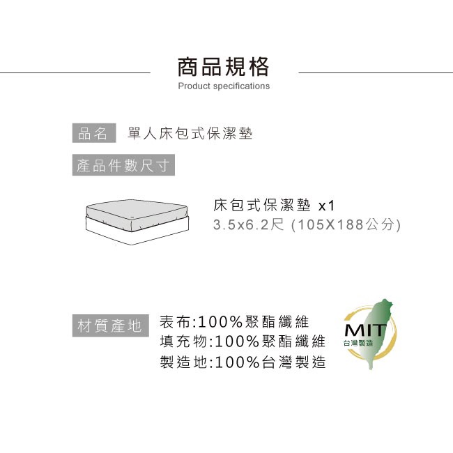 鴻宇 透氣防污 單人床包式保潔墊 台灣製C520【超取/店到店僅限1件】