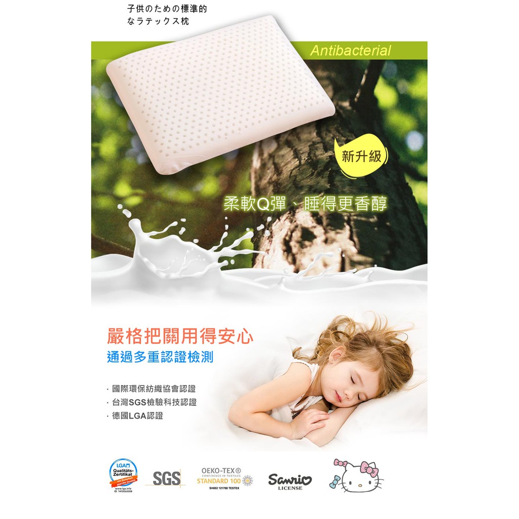 鴻宇 抗菌兒童乳膠枕 美國棉 日本抗菌 Hello kitty 多款任選