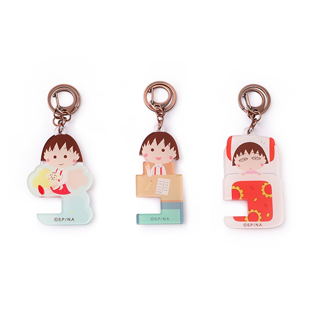櫻桃小丸子手機站起來鑰匙圈 - Norns Original Design 櫻桃小丸子 手機架 多功能壓克力鑰匙圈 吊飾