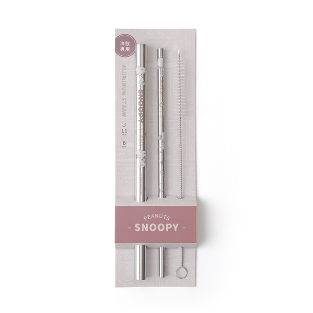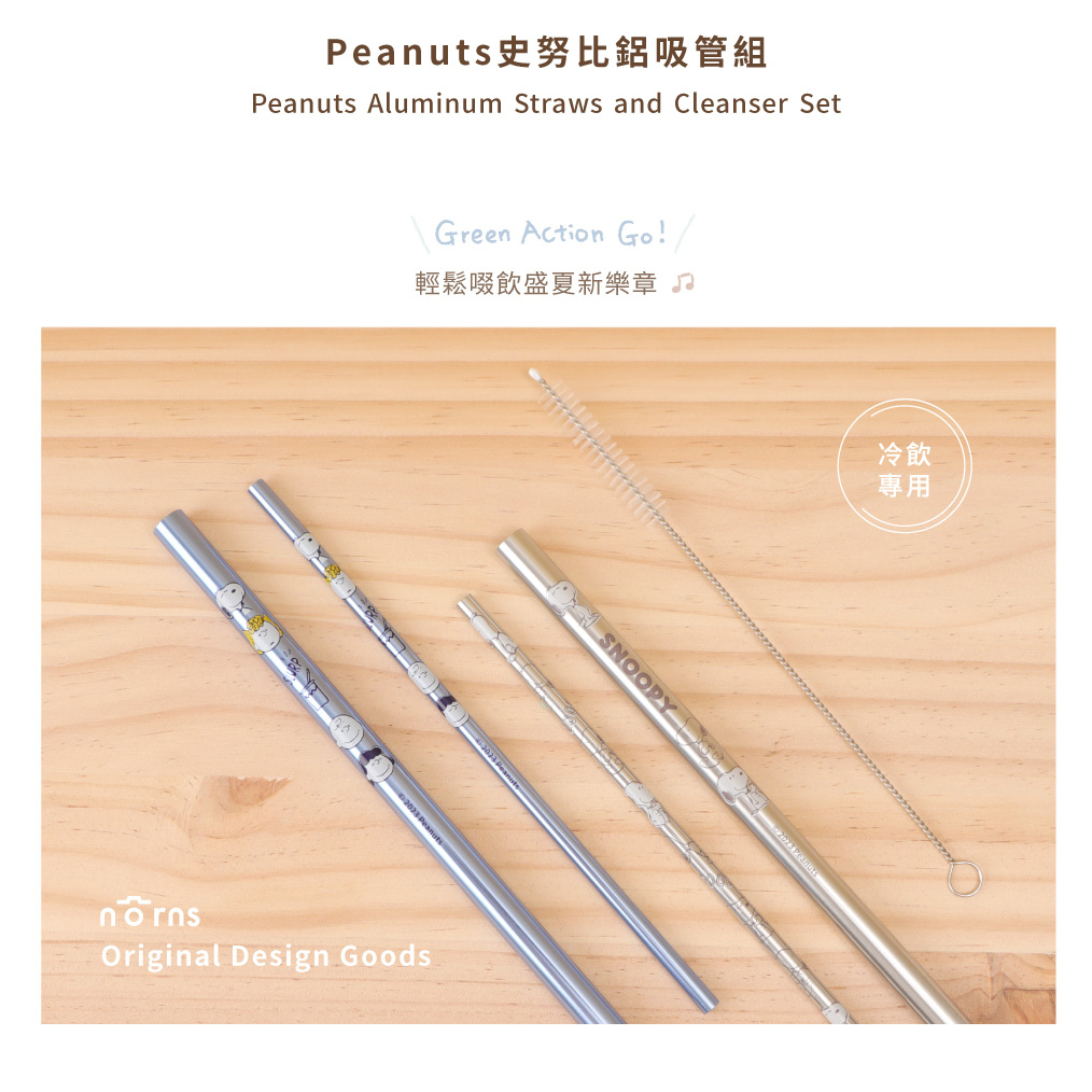 Peanuts史努比鋁吸管組 冷飲專用-Norns Original Design Snoopy環保吸管三入組 附清潔刷