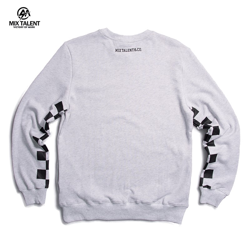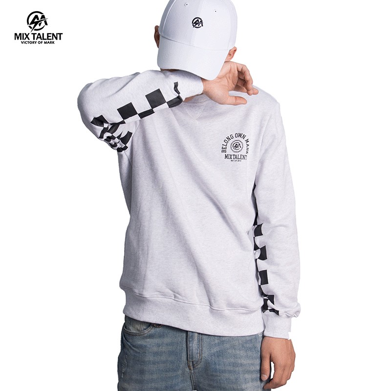 MIX TALENT 方格袖 百搭潮流 情侶裝 大學T - 麻花白