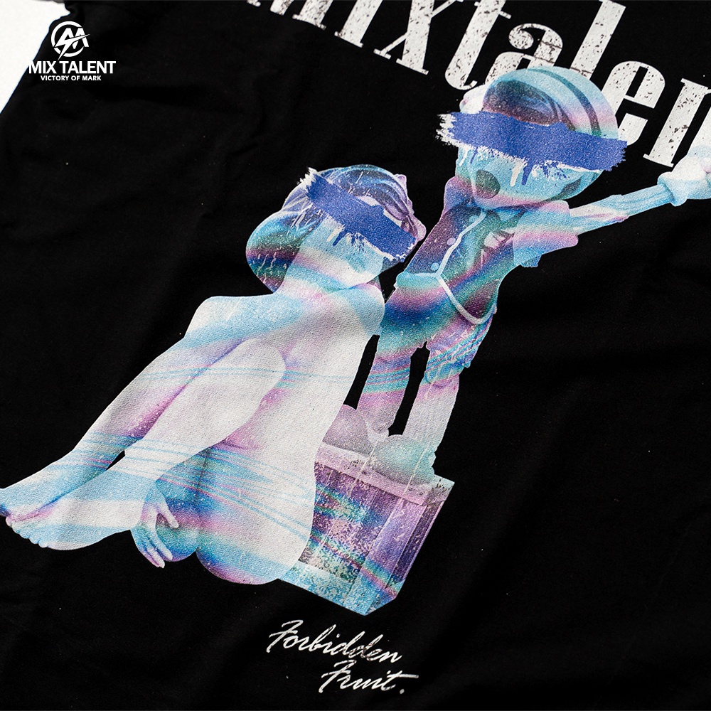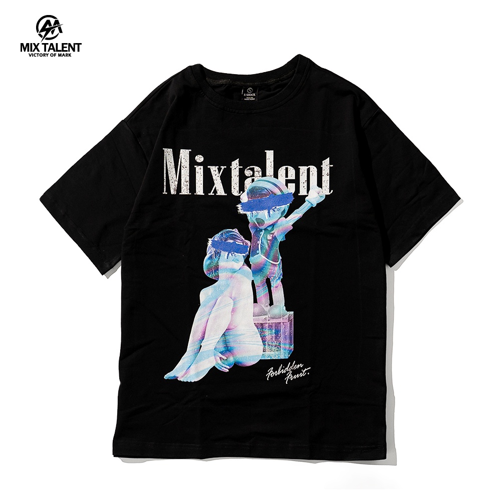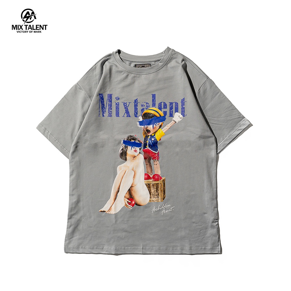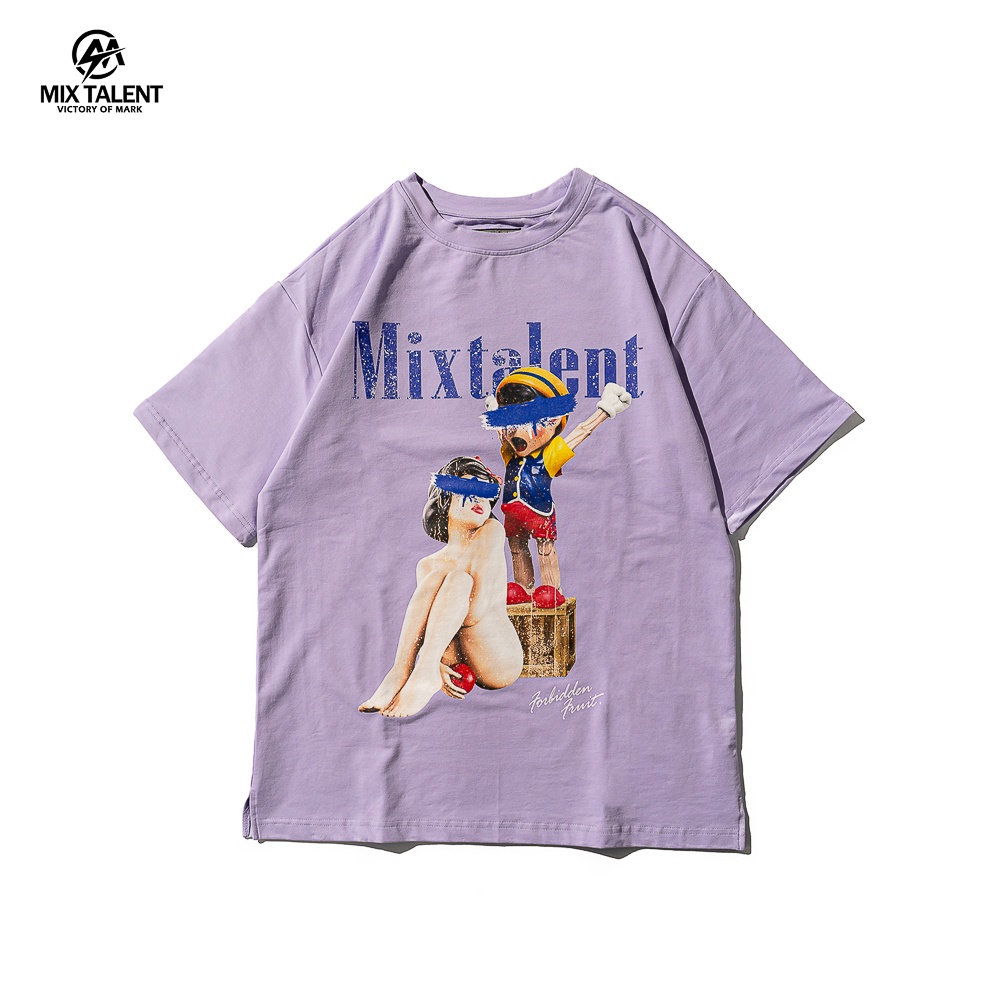 MIX TALENT x 木偶x公主 成人 翻玩系列 寬版 OVERSIZE 落肩 圓領T 短T - 黑/灰藍/紫
