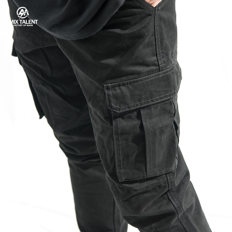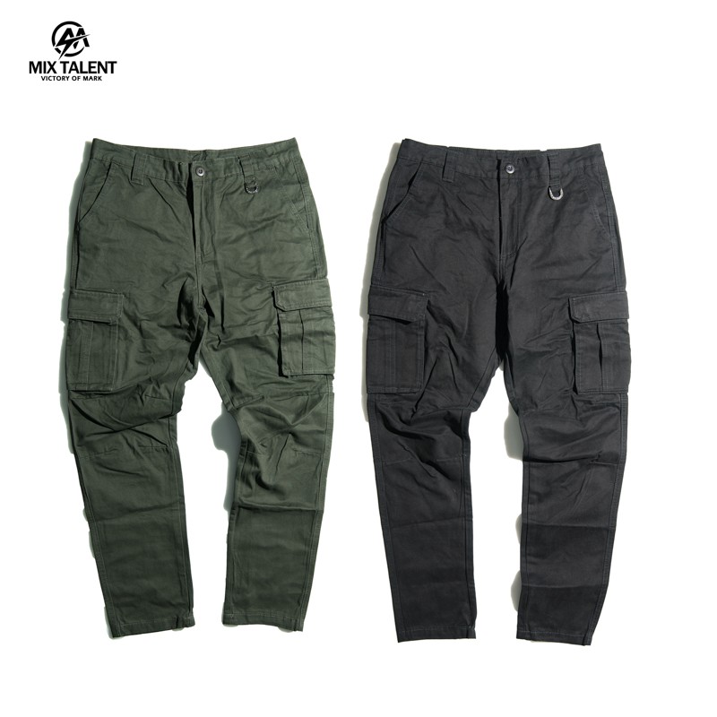 MIX TALENT 工裝褲 畫家褲 工作褲 休閒褲 側口袋 軍式風 長褲 - 黑