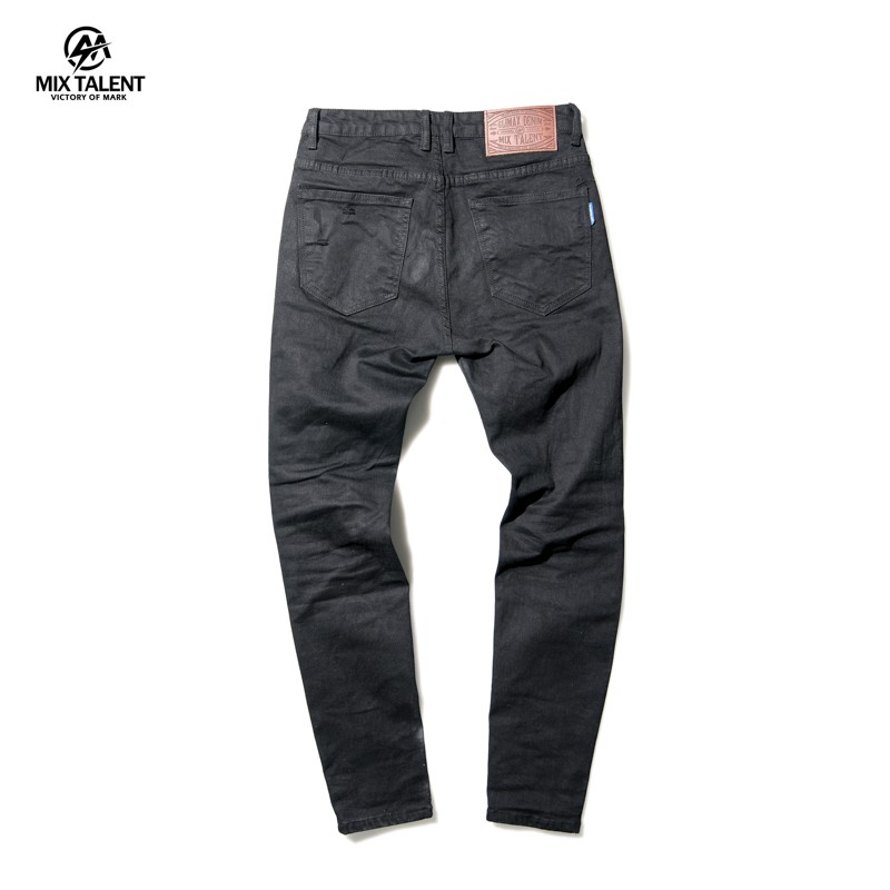 MIX TALENT 雙膝破壞褲 牛仔褲 單寧 長褲 休閒褲 - 黑