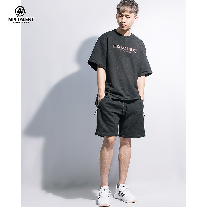 MIX TALENT 素色 拉鍊 短棉褲 短褲 棉褲 - 黑/白