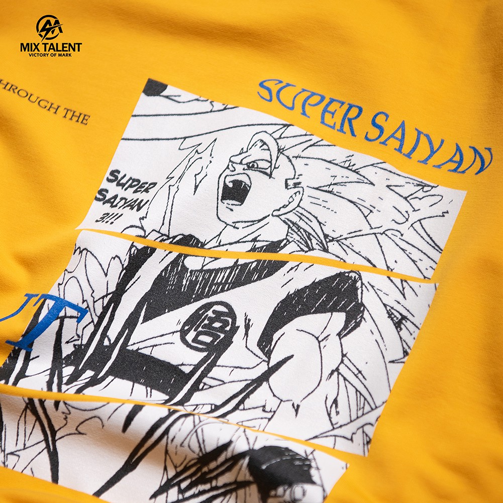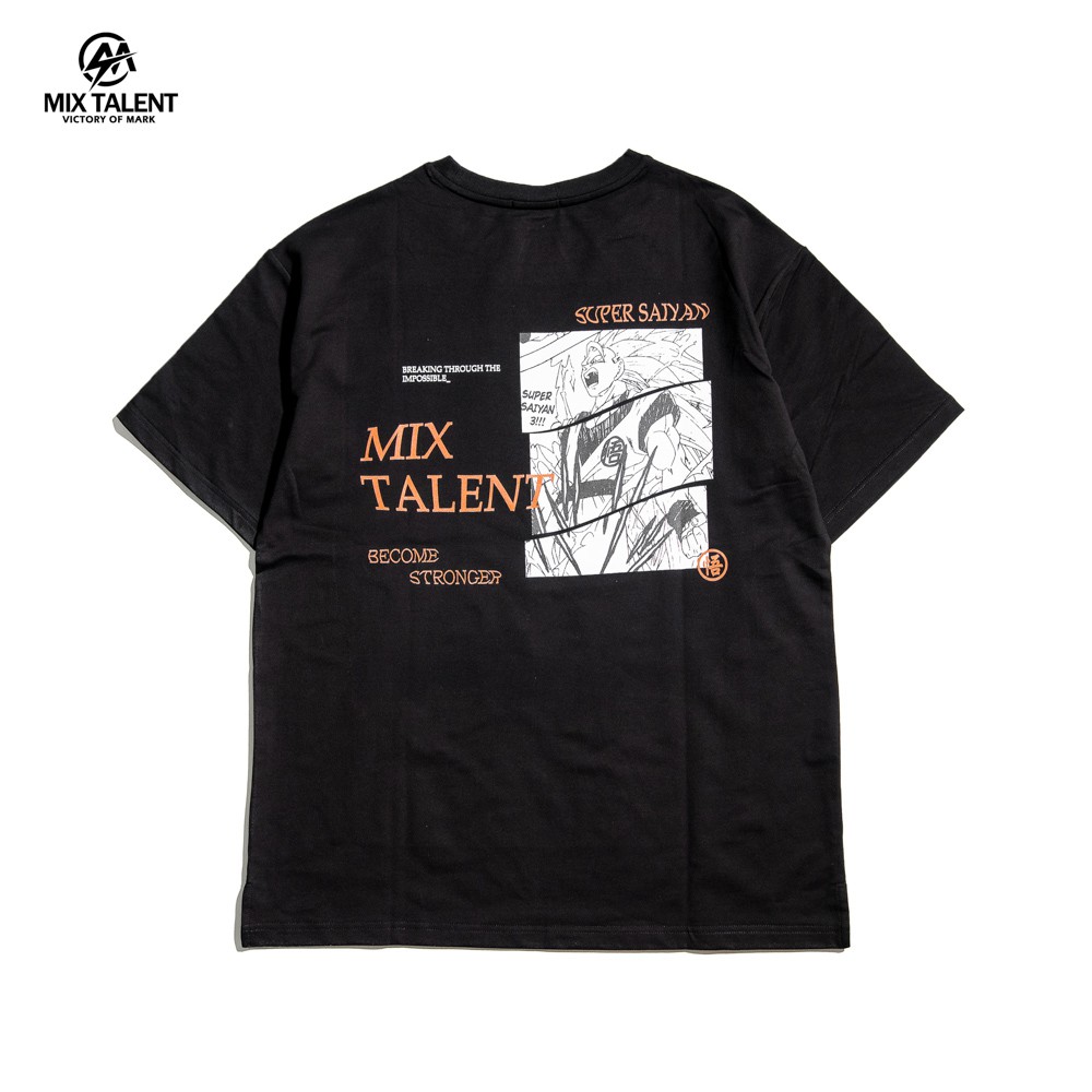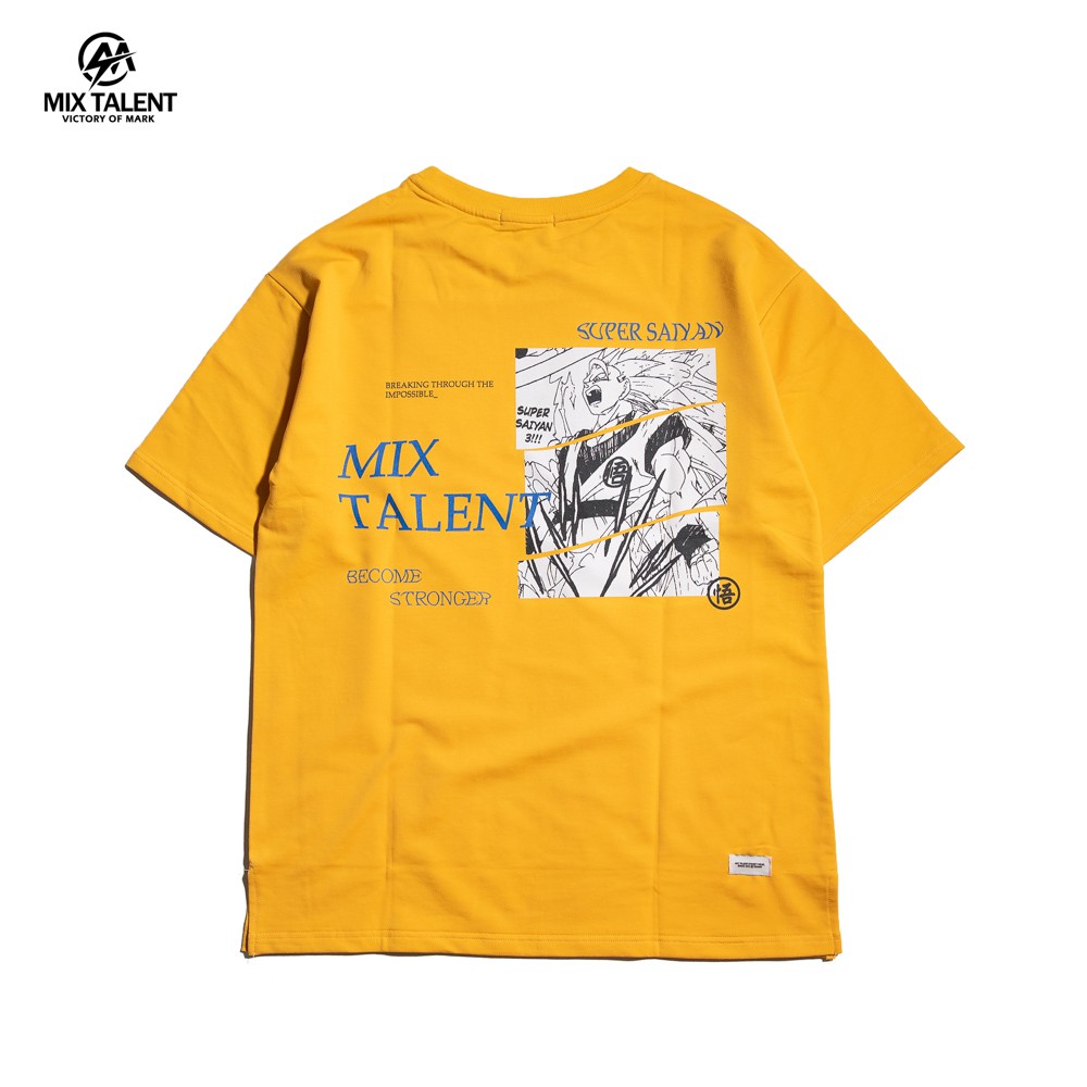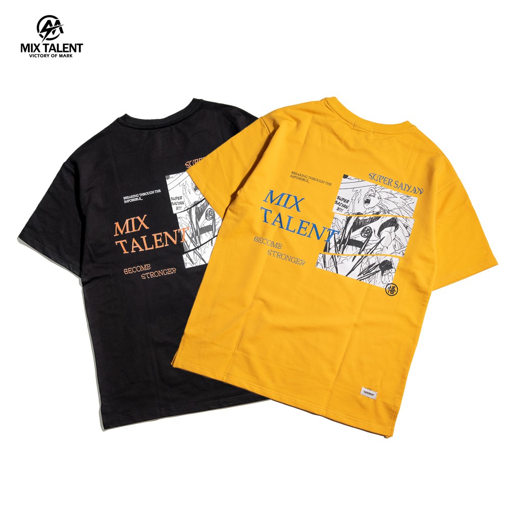 MIX TALENT x 龍珠 賽亞人 翻玩系列 前後設計 寬版 OVERSIZE 落肩 短T - 黑/黃