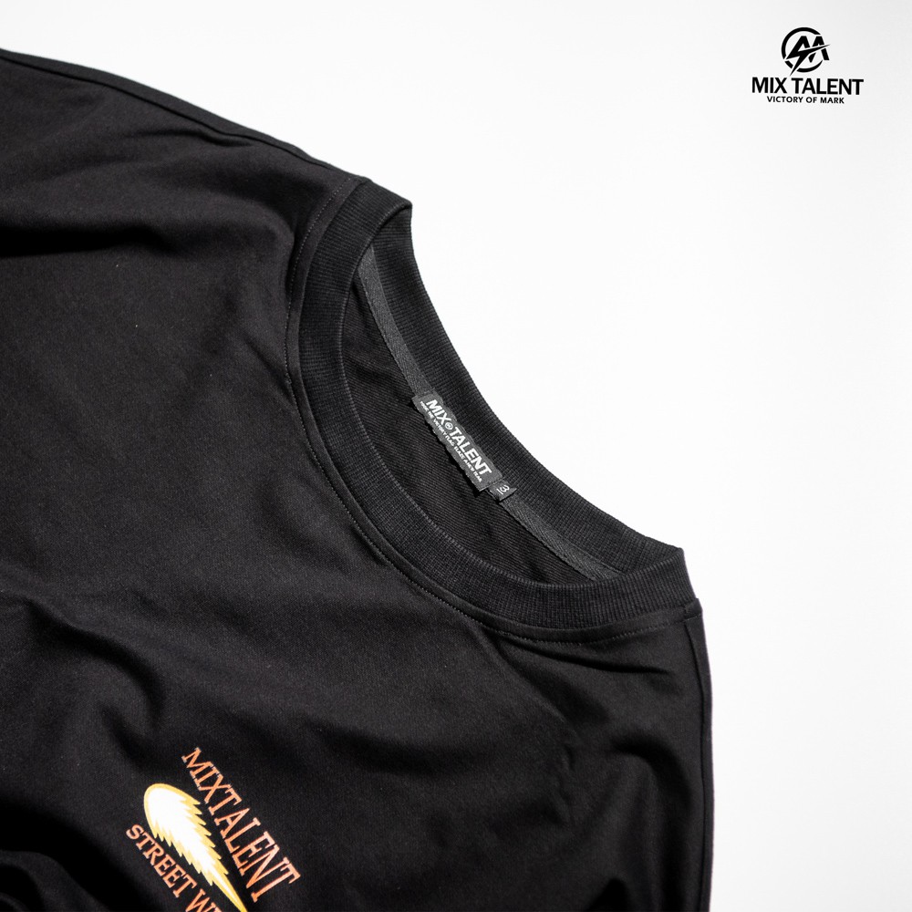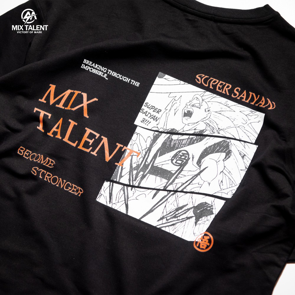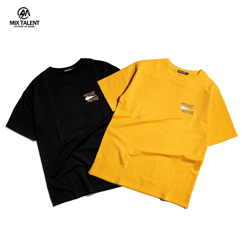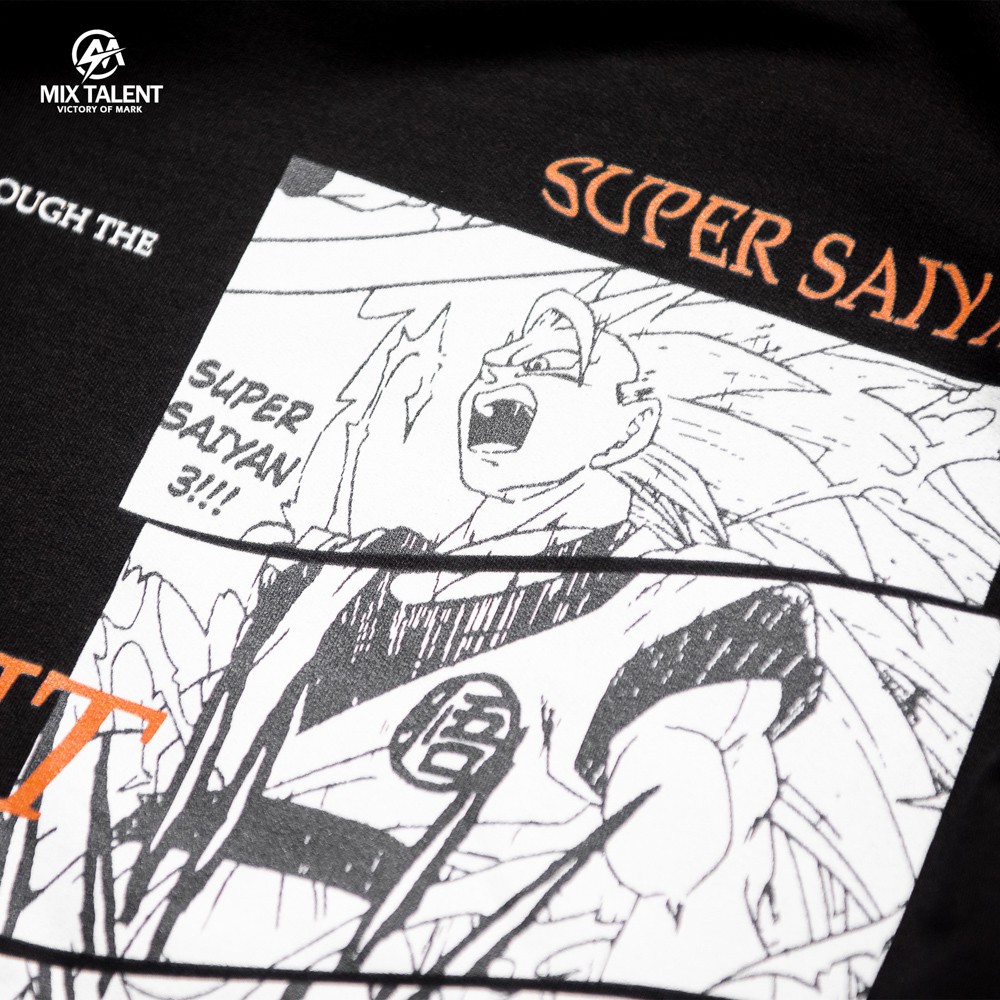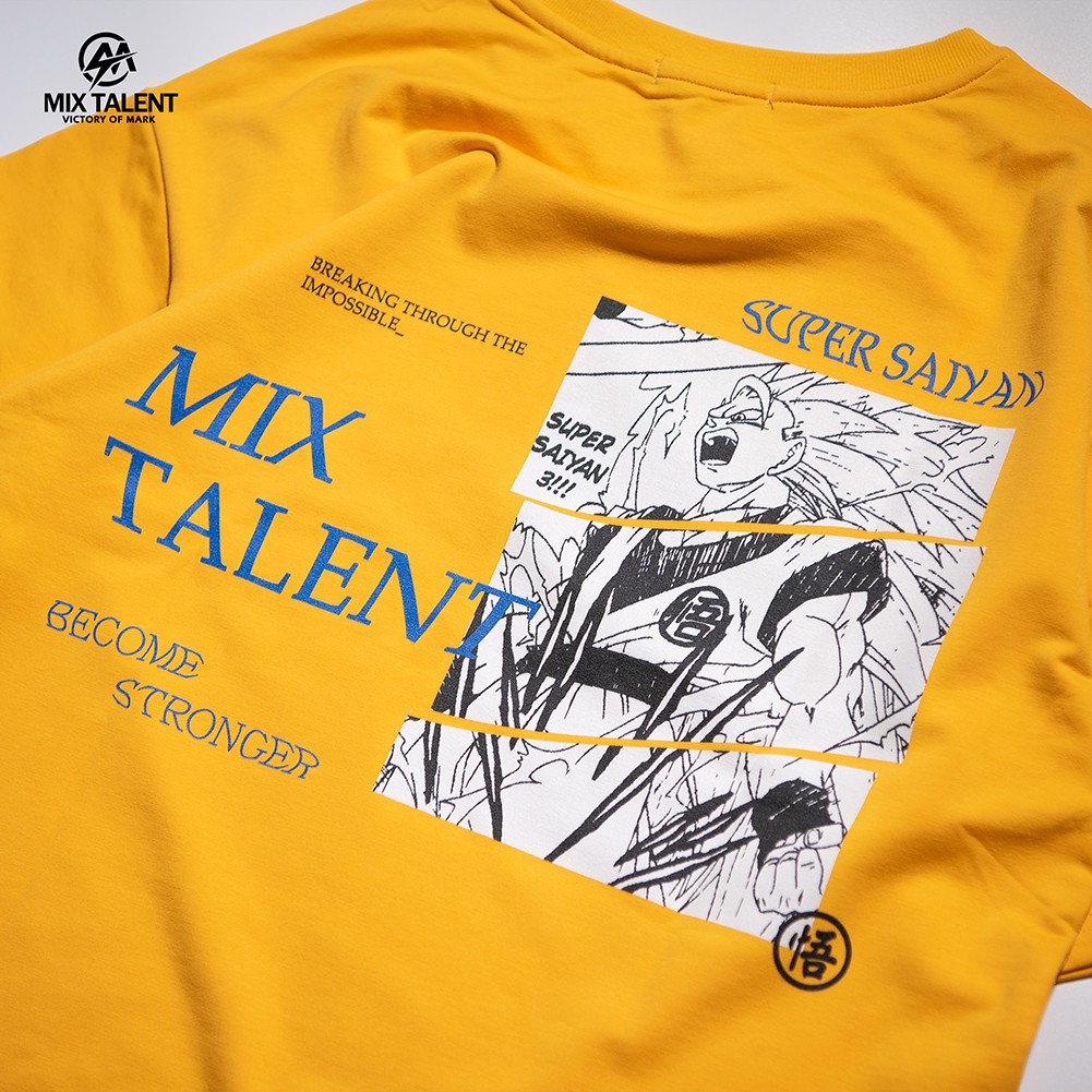 MIX TALENT x 龍珠 賽亞人 翻玩系列 前後設計 寬版 OVERSIZE 落肩 短T - 黑/黃