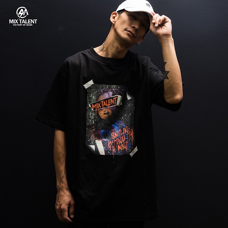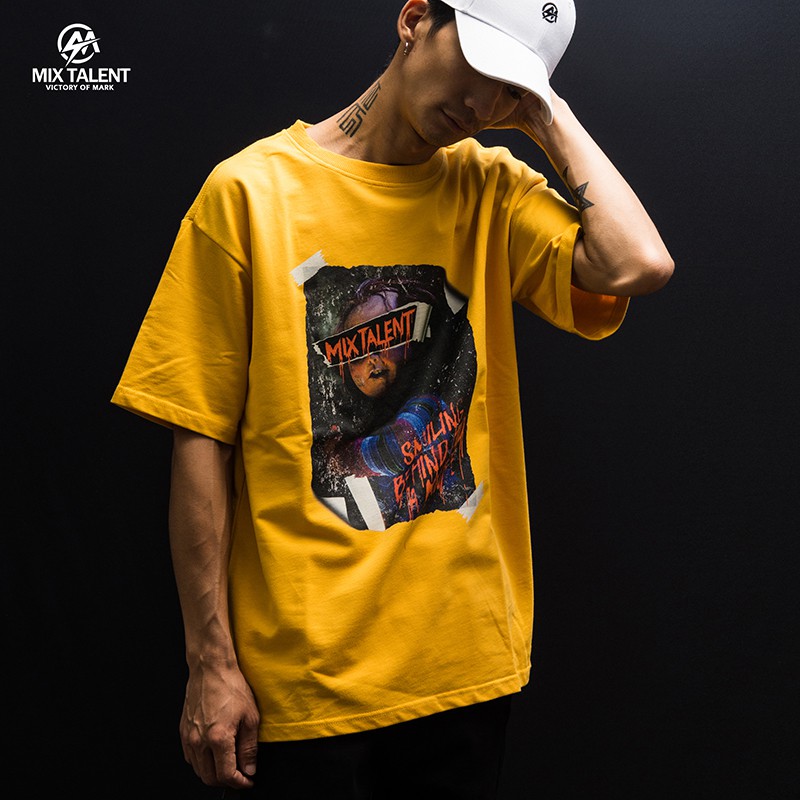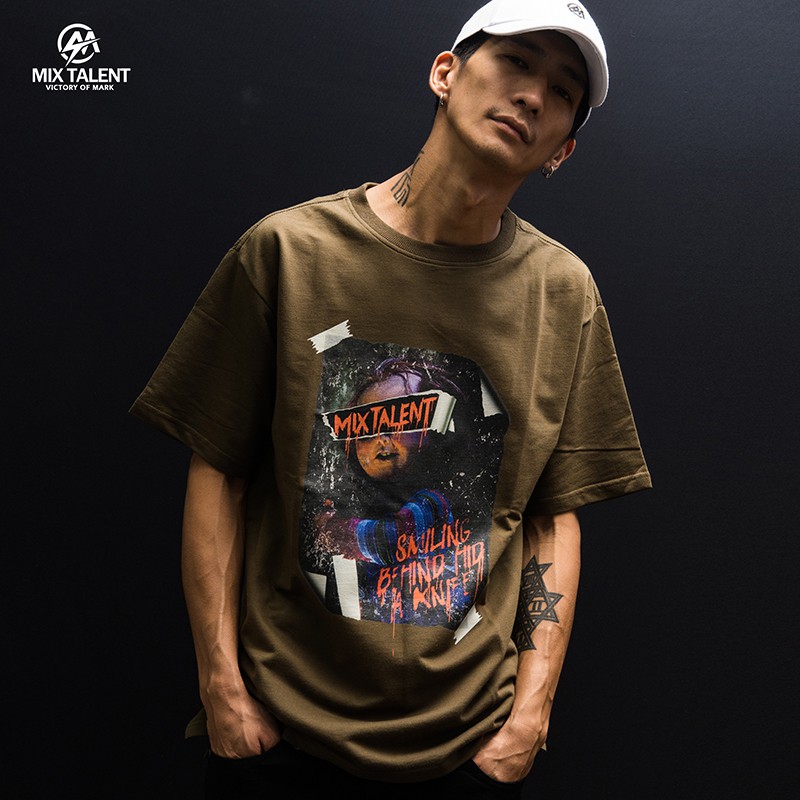 MIX TALENT 寬版 落肩 OVERSIZE 潮流 恰吉 設計短T - 三色