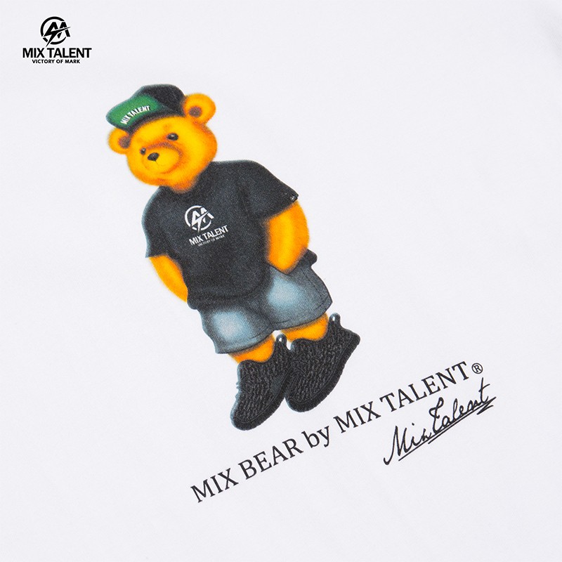 MIX TALENT 動物系列 小熊 百搭潮流 圓領T 情侶裝 短T -白色