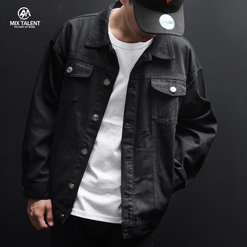 MIX TALENT 牛仔 丹寧 寬版外套 DENIM JACKET-黑