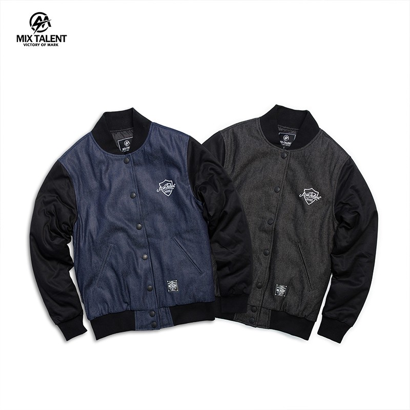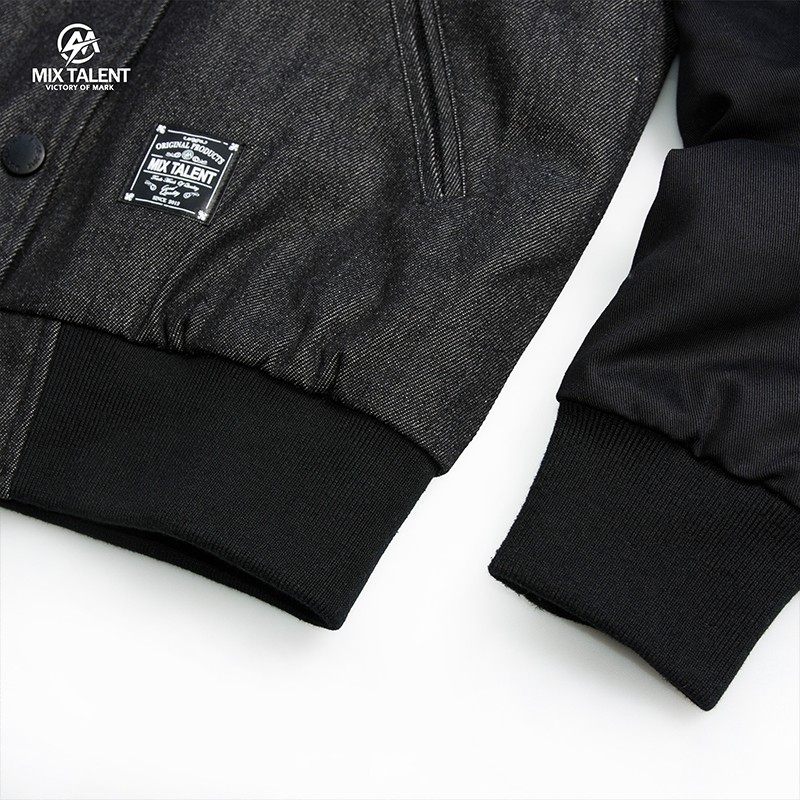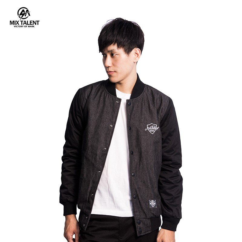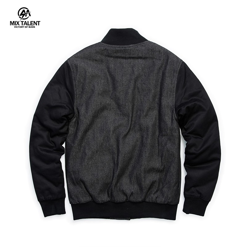 MIX TALENT 牛仔 拼接 飛行 外套 MA-1 - 黑