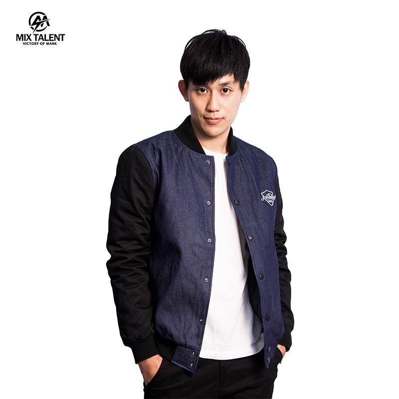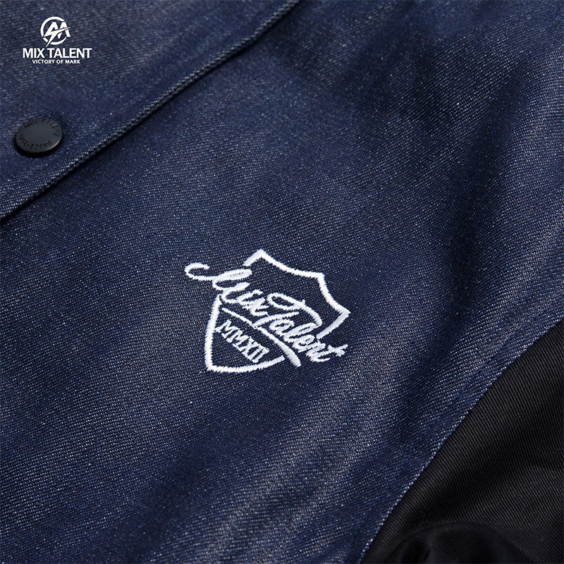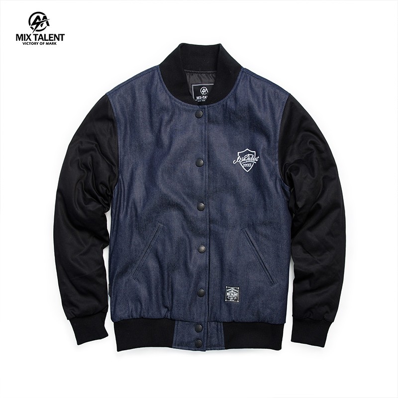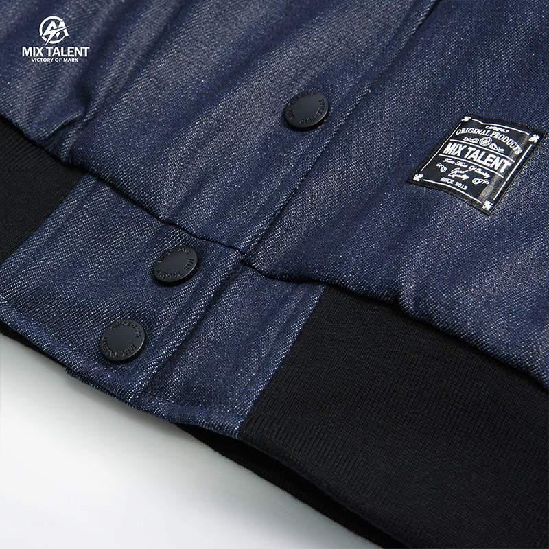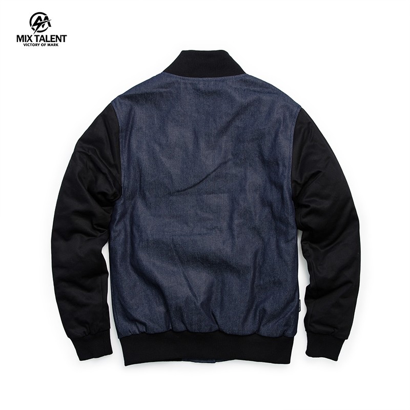 MIX TALENT 牛仔 拼接 飛行 外套 MA-1 - 藍
