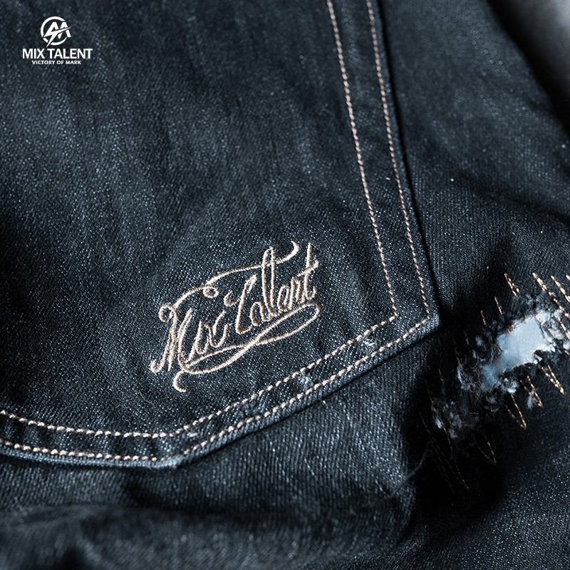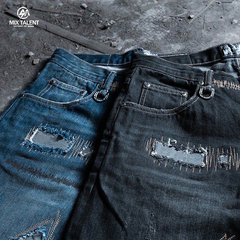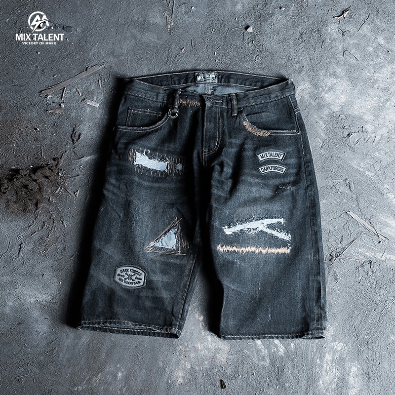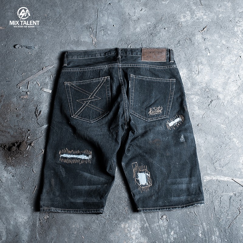MIX TALENT 牛王 反光 破壞 牛仔 短褲 - 黑
