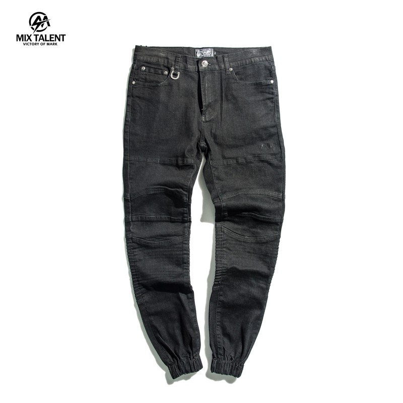MIX TALENT 牛仔褲 機車褲 丹寧牛仔 縮口褲 休閒長褲 - 黑