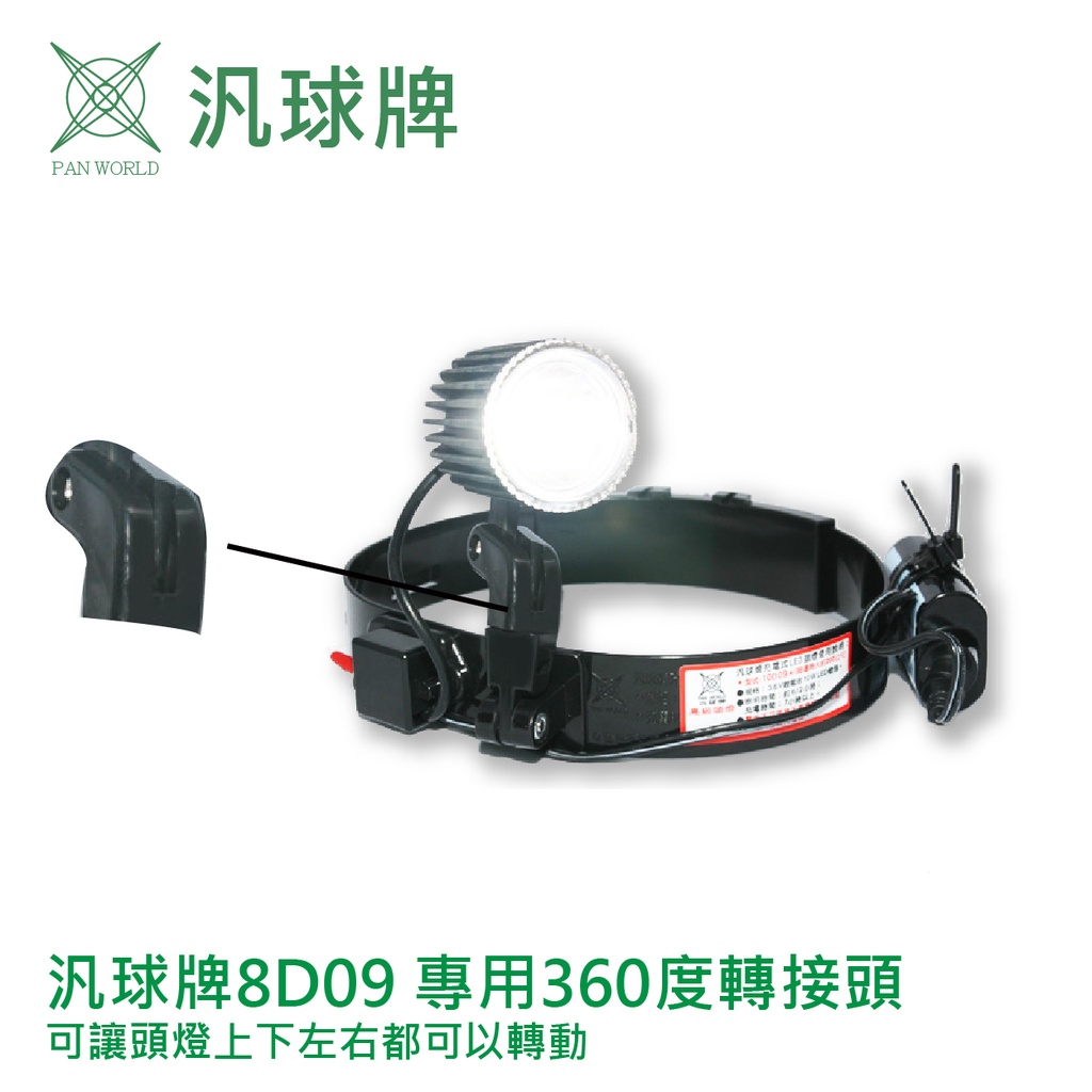 汎球牌 8D09 超亮頭燈 360度轉接頭 10D09 哈家人