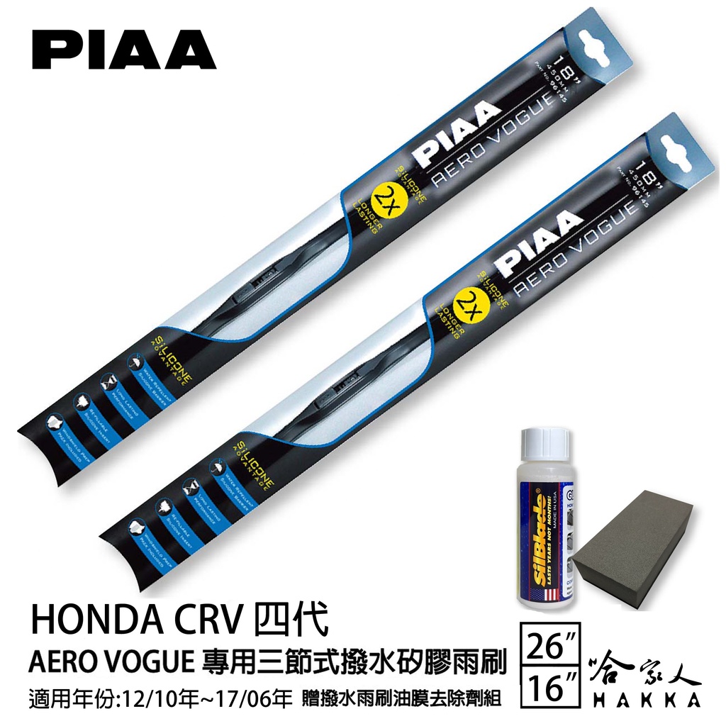 PIAA Honda CRV 四代 三節式日本矽膠撥水雨刷 26+16 贈油膜去除劑 12~17年 4代 本田 哈家人