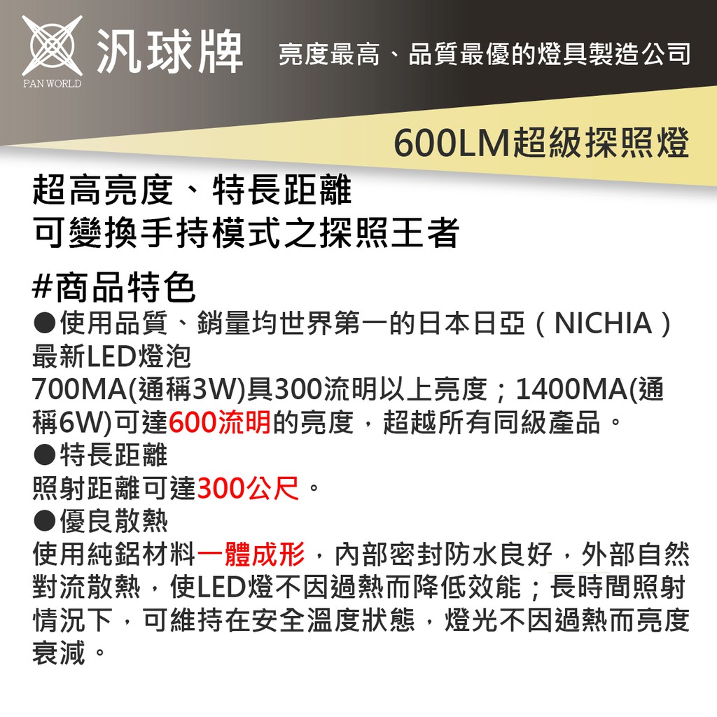 汎球牌 兩用式 超級探照燈 600LM n03. 300公尺 手提 手持 兩用 探照燈 登山 探照燈 一年保固 哈家人