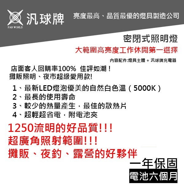 【 汎球牌 】密閉式照明燈 LED 12 V 20 夜市愛用款 超亮 攤販 露營 夜釣 防水 外接電源 接電瓶燈具哈家人