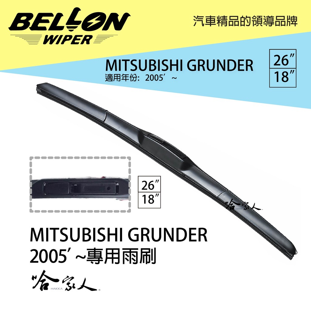 BELLON GRUNDER 05年後 專用接頭雨刷 【免運贈雨刷精】 三菱 26吋 18吋 三節式雨刷 哈家人