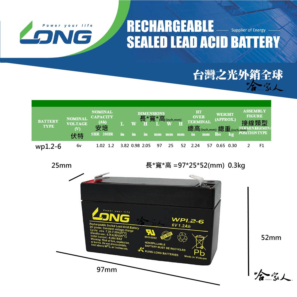 LONG廣隆光電 WP 1.2-6 NP 6V 1.2AH UPS 不斷電 監視器 UPS 密閉式電池 照明 哈家人