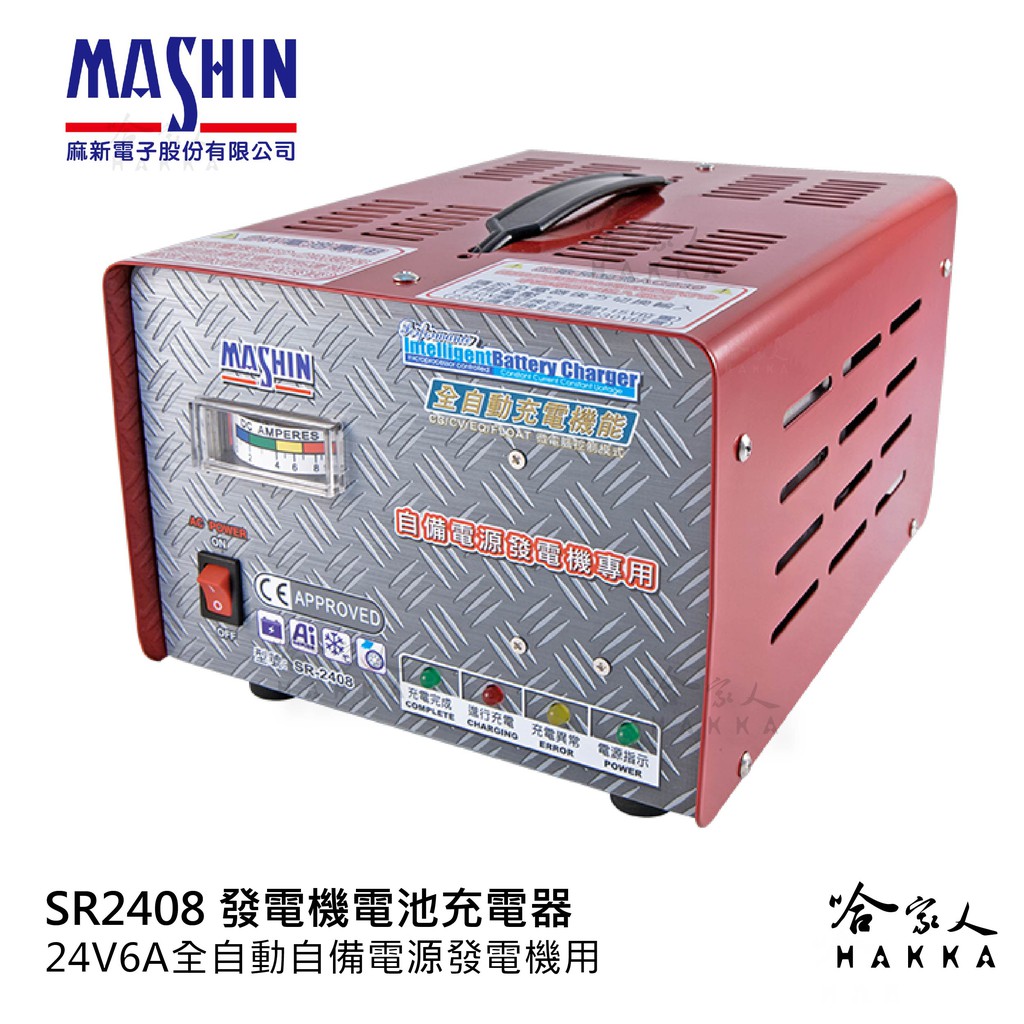 麻新電子 SR-2408 24V/6A 微電腦全自動發電機電池專用充電機 免運 附發票 自動充電功能 工廠專用 哈家人
