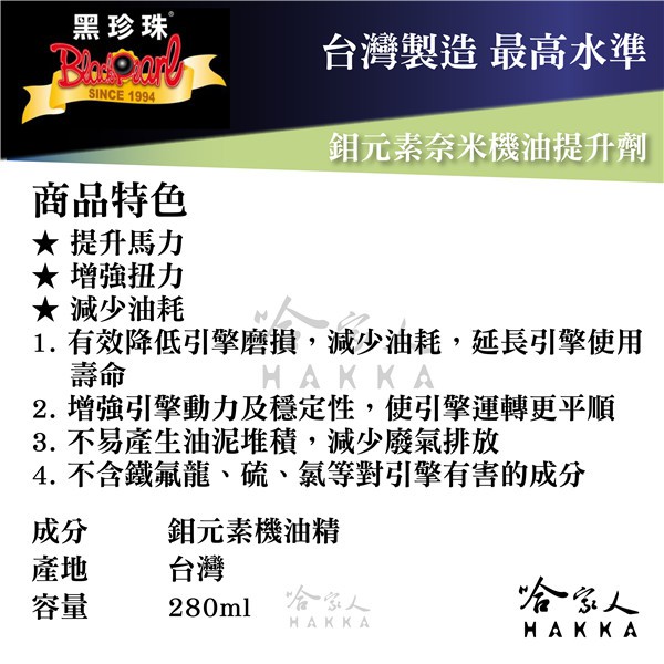 黑珍珠 鉬元素奈米機油提升劑 【贈水拔汽油精】 提升馬力 降低磨損 德國原料 機油精 鉬元素 哈家人