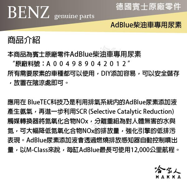 BENZ 賓士 原廠 AdBlue 尿素 10L DIESEL 柴油車 w166 ml w205 c200 哈家人